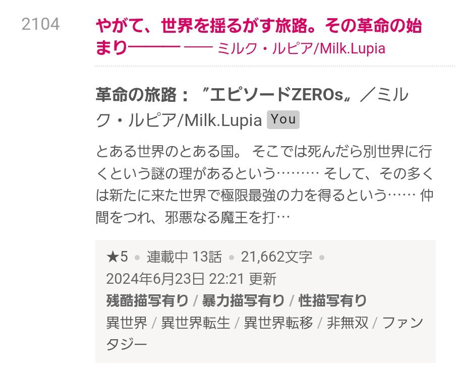 皆様のお陰で、革命の旅路エピソードZEROsがランクインしました!