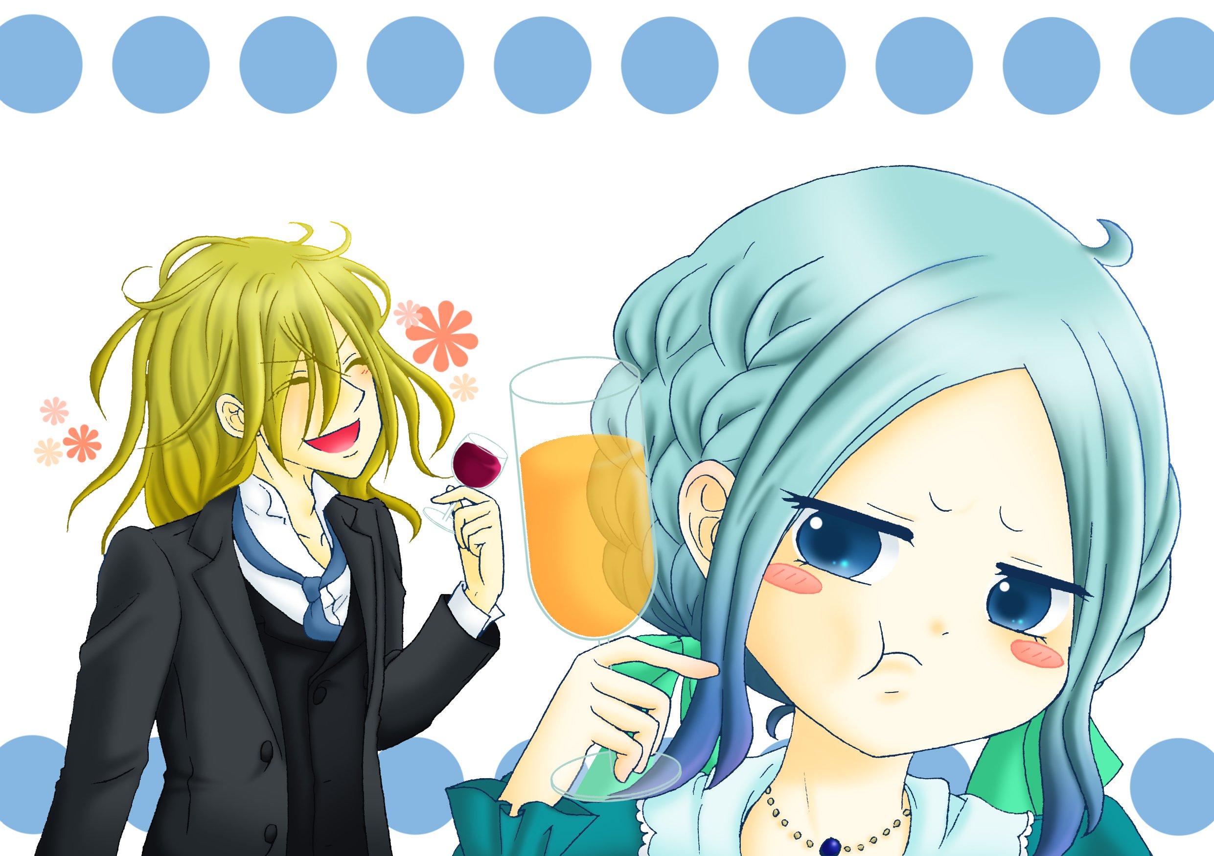 さて、今回のイラストは9話で、オレンジジュース似合うねと言って笑うルイリーと、子供扱いに拗ねているナシャです。