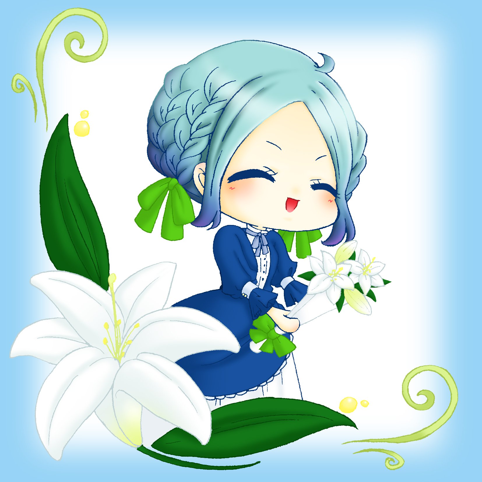 ちびキャラだとより判りにくいですが、前より後ろが膨らんだバッスルモチーフドレスです。