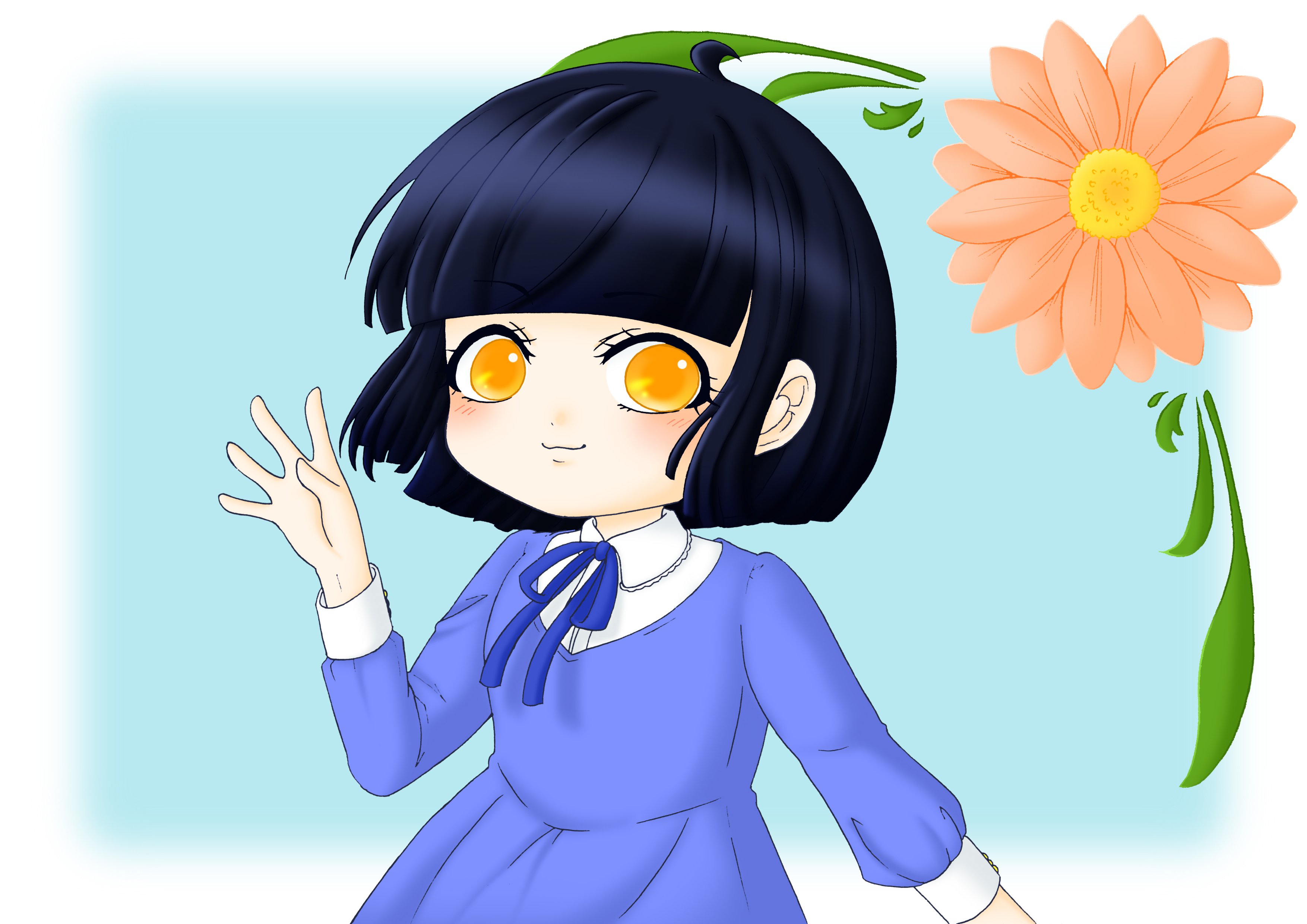 一番最初にあらすじを拝読したときは、日本人形みたいなイメージかと思っていたのですが、おかっぱ頭に長いまつげ、ワンピース姿ということで作品に合わせ、キャラデザを調整していきました。