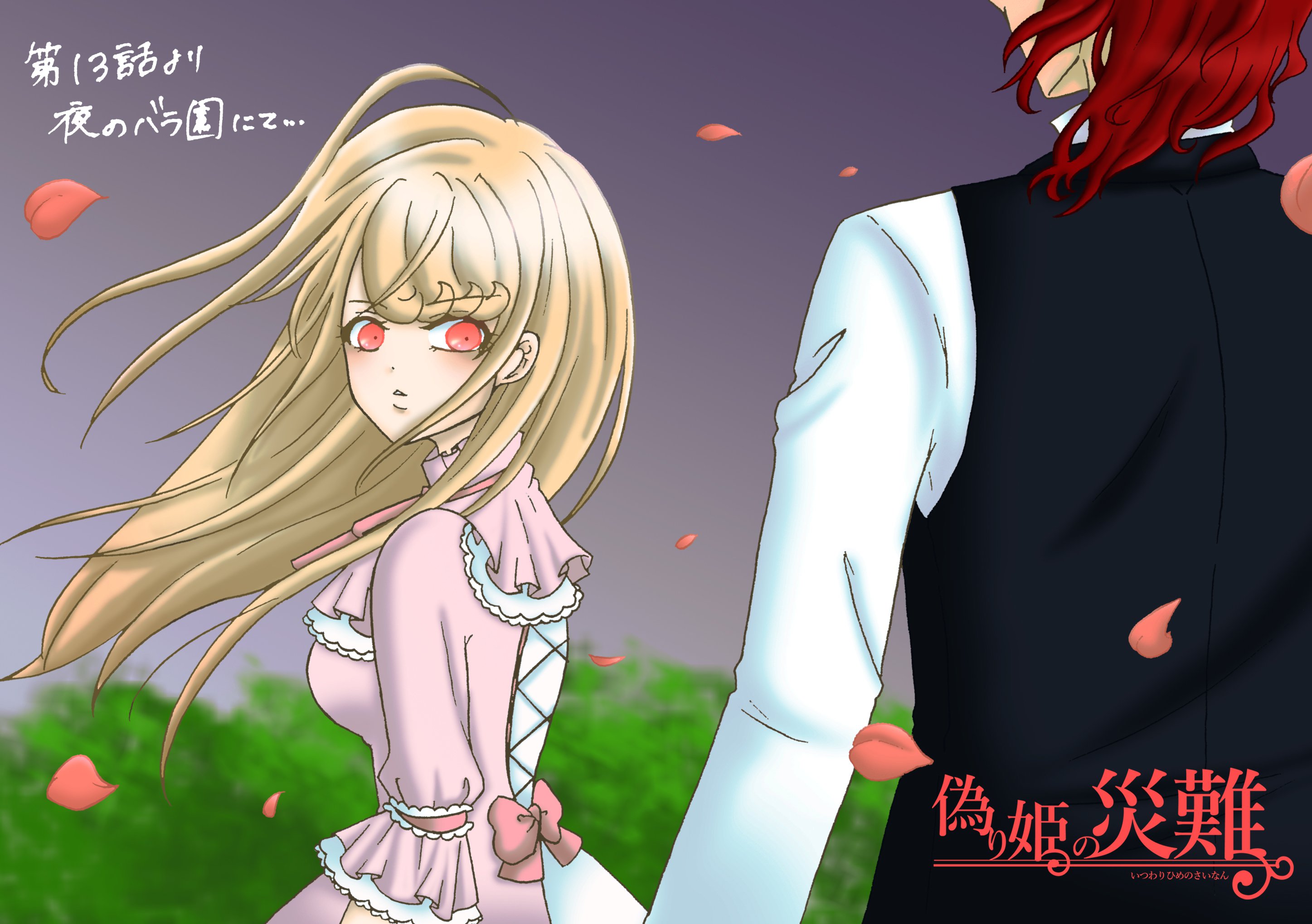 今回のイラストは、夜の薔薇園でまみえた2人です。