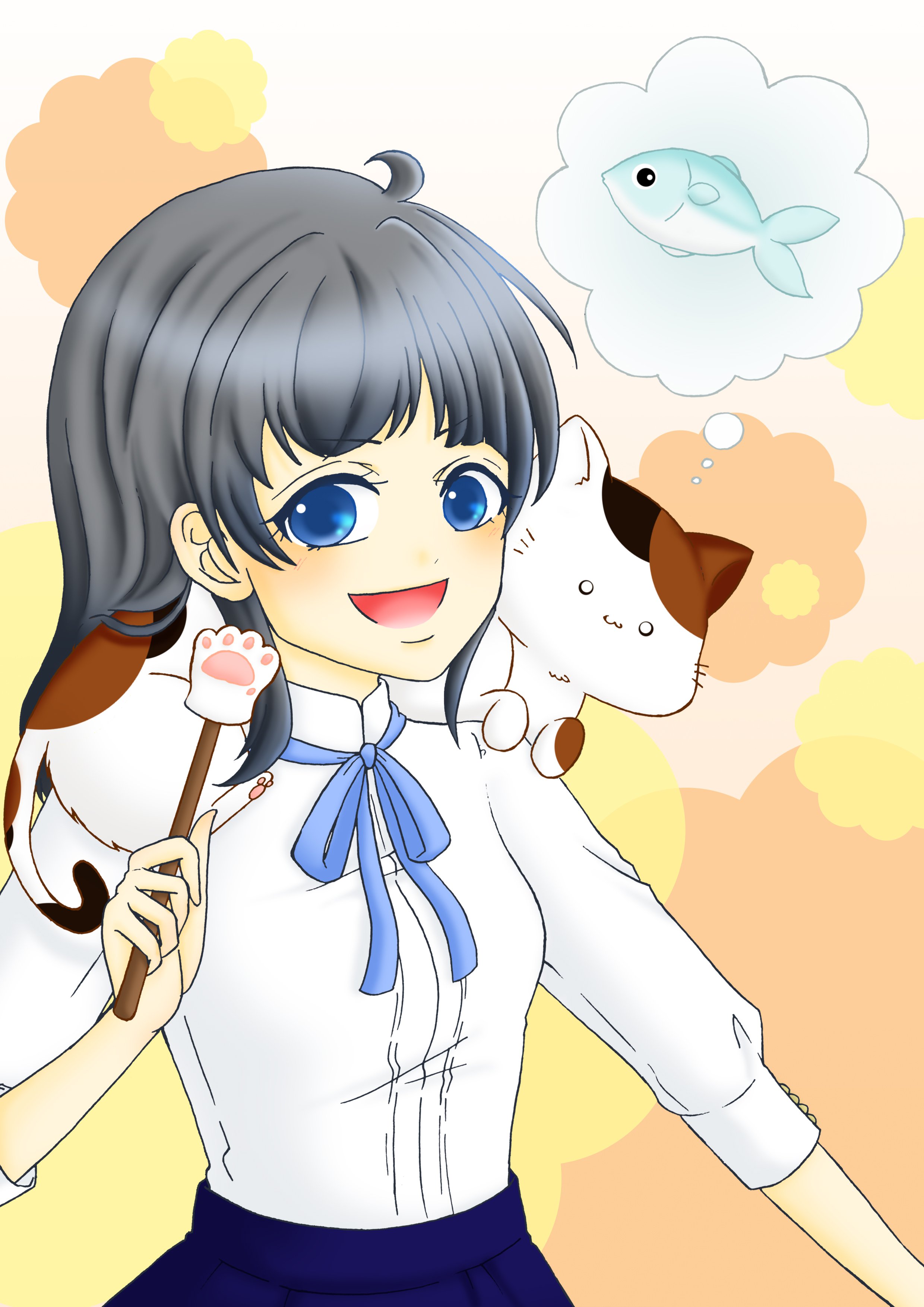 2枚目はタマを肩に乗せ猫神様の杖を持ったメアリーちゃんのイメージです。