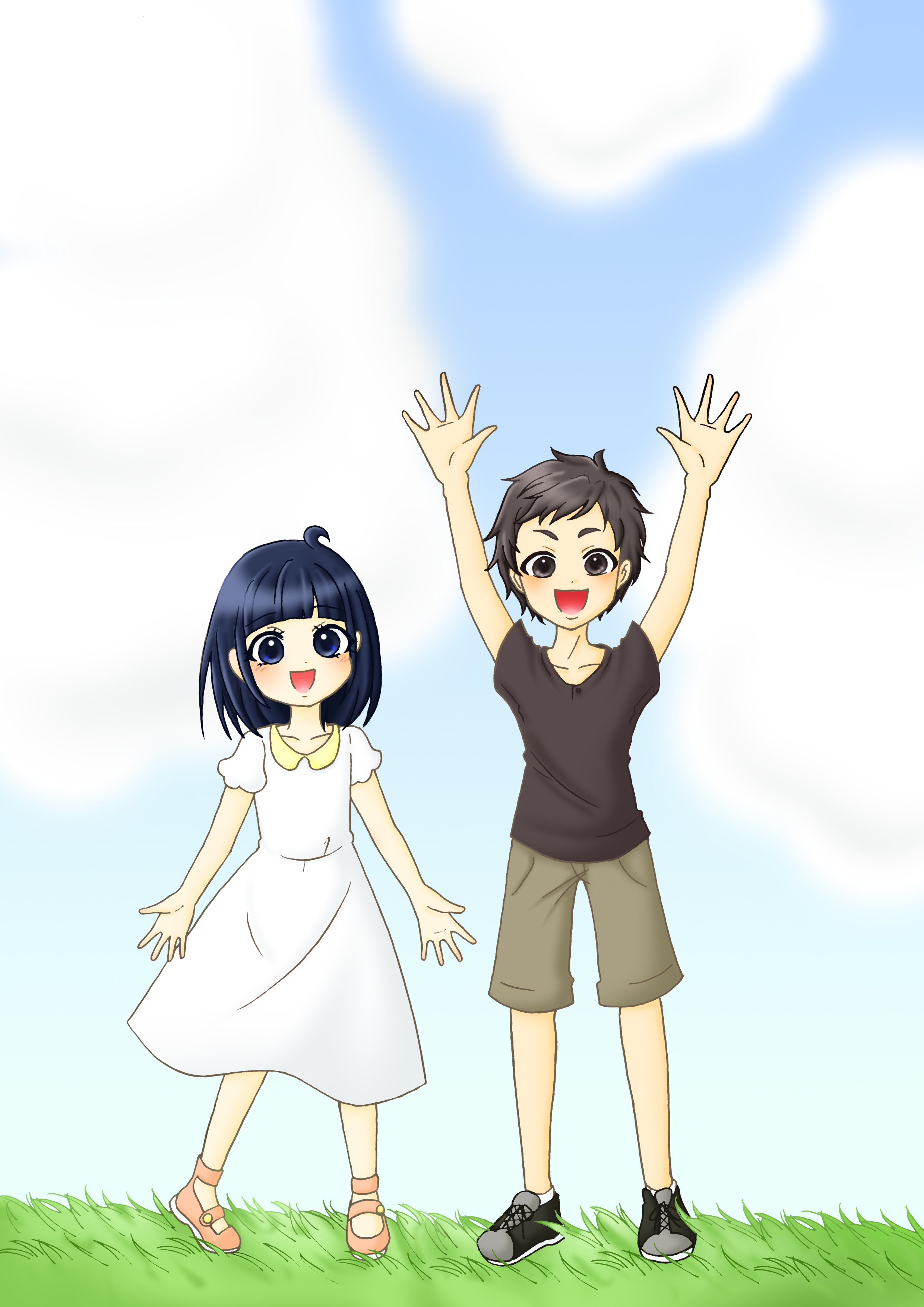 1枚目はタイトルにもある恵一くんと藍ちゃんが入道雲を仰いだシーンをイメージして描きました。
