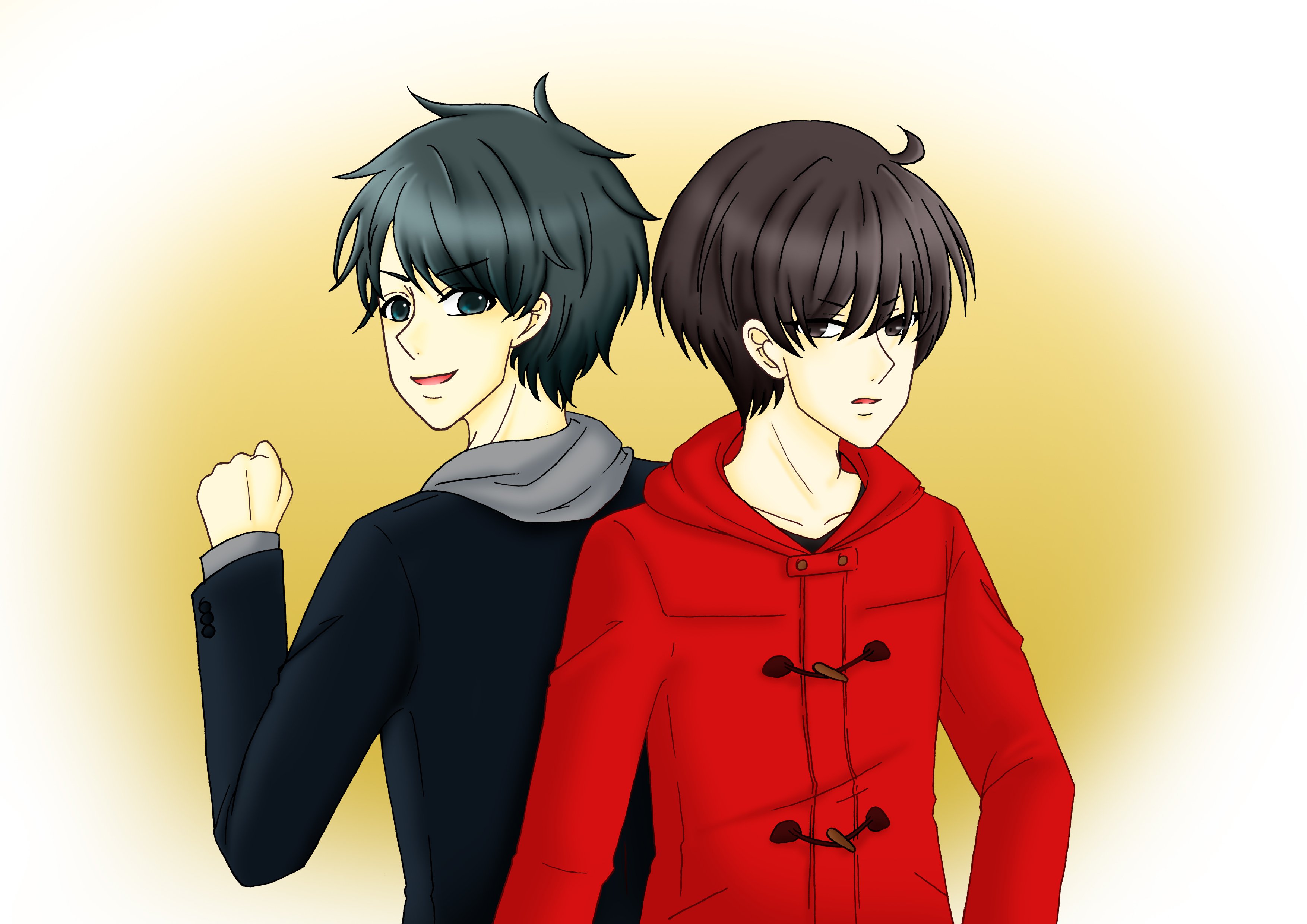 1枚目は夏樹くんとシオンくんを背中合わせで描いてみました。