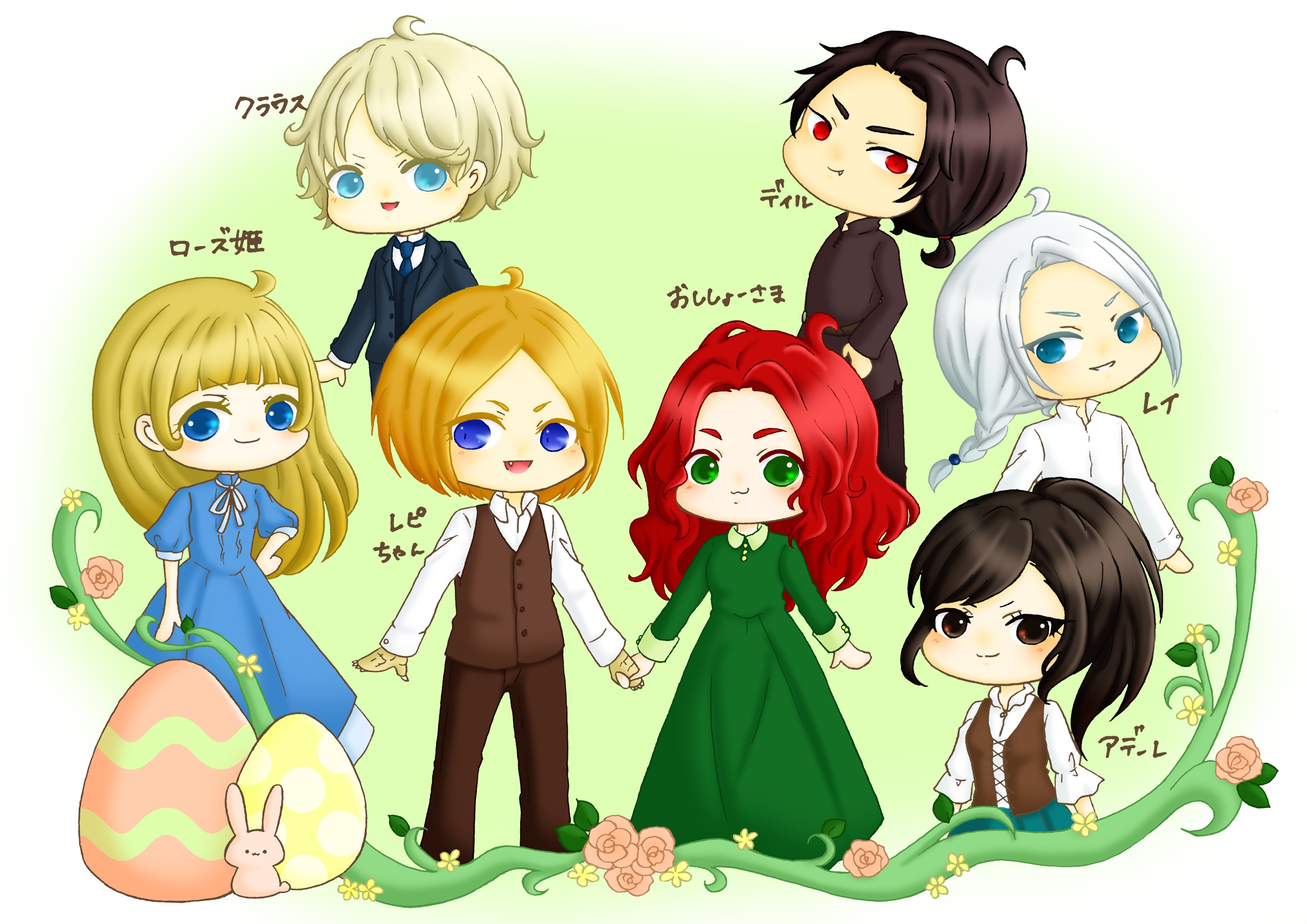 各キャラの特徴などはできる限り再現したつもりですが、誰が誰か分からないとあれなので、一応名前を振っておきました。