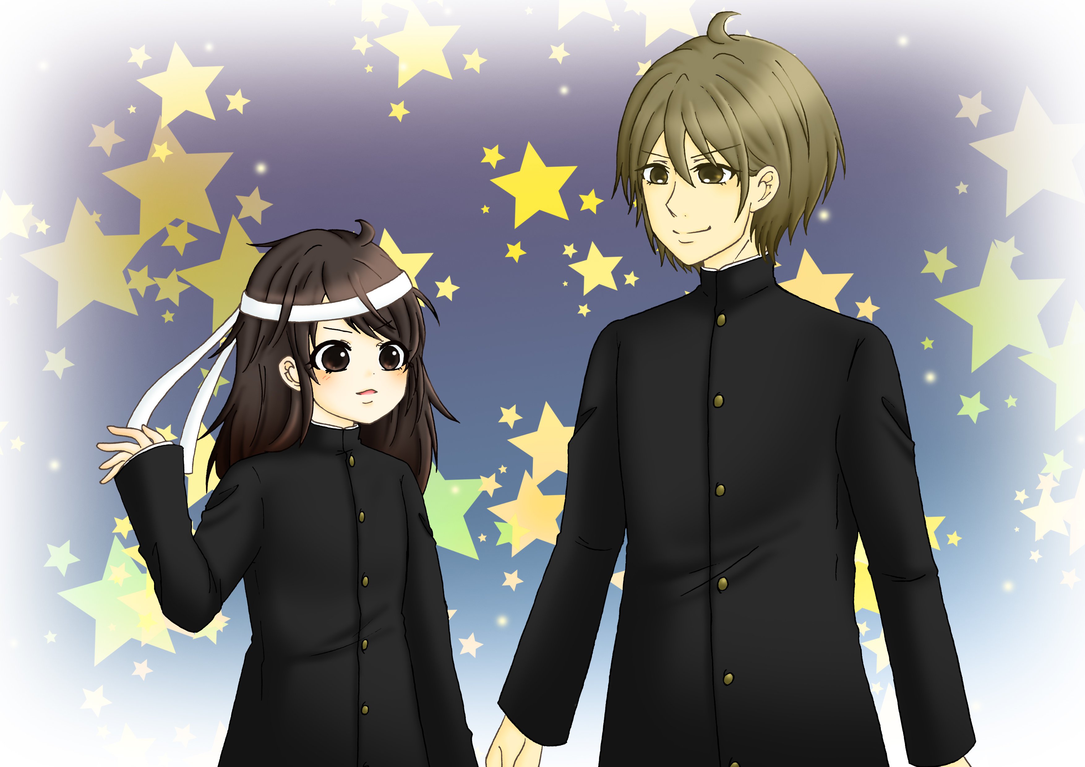 1枚目は、応援団(長ラン)姿のさやかちゃんと、学園の王子様 星谷先輩を描きました。