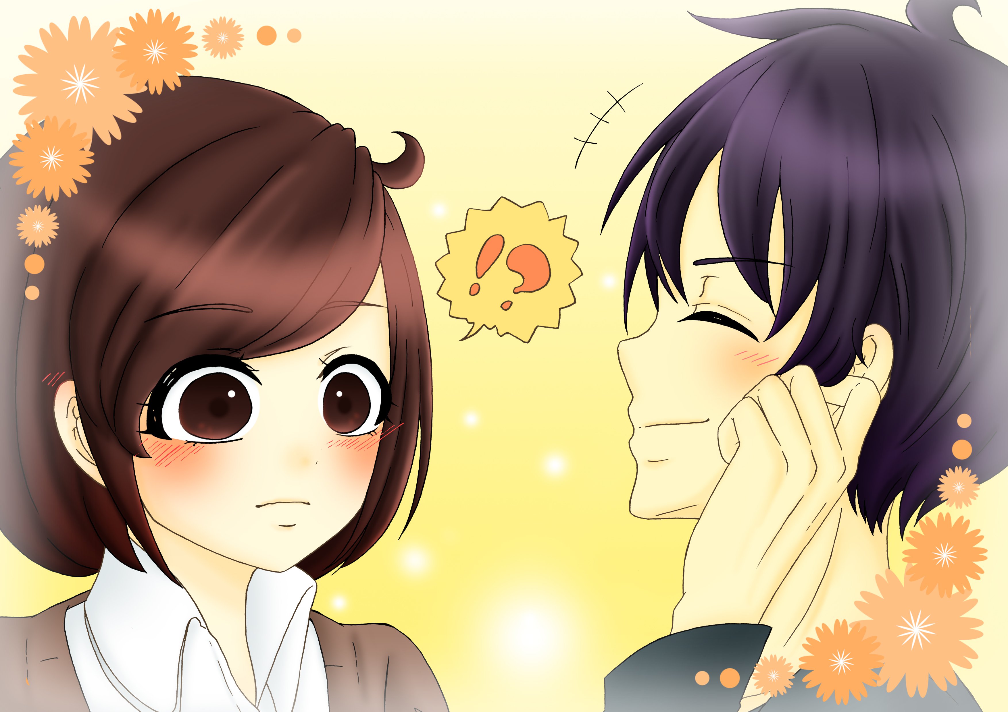 彼の満面の笑顔に対し、動揺している渚さんがかわいく描けたかなと思います。