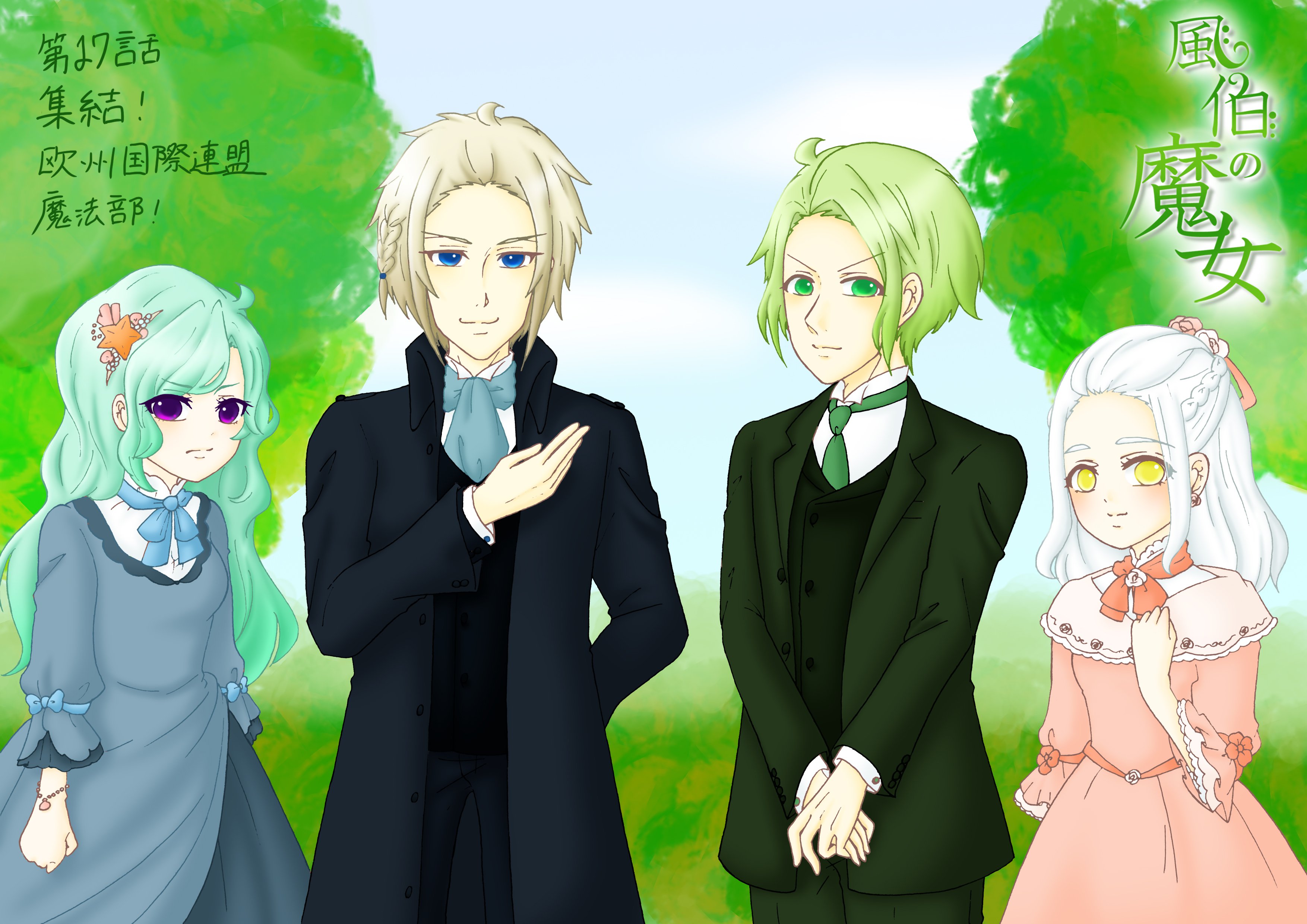 今回のイラストはリーシェルが出会った欧州国際連盟魔法部の職員たちです。