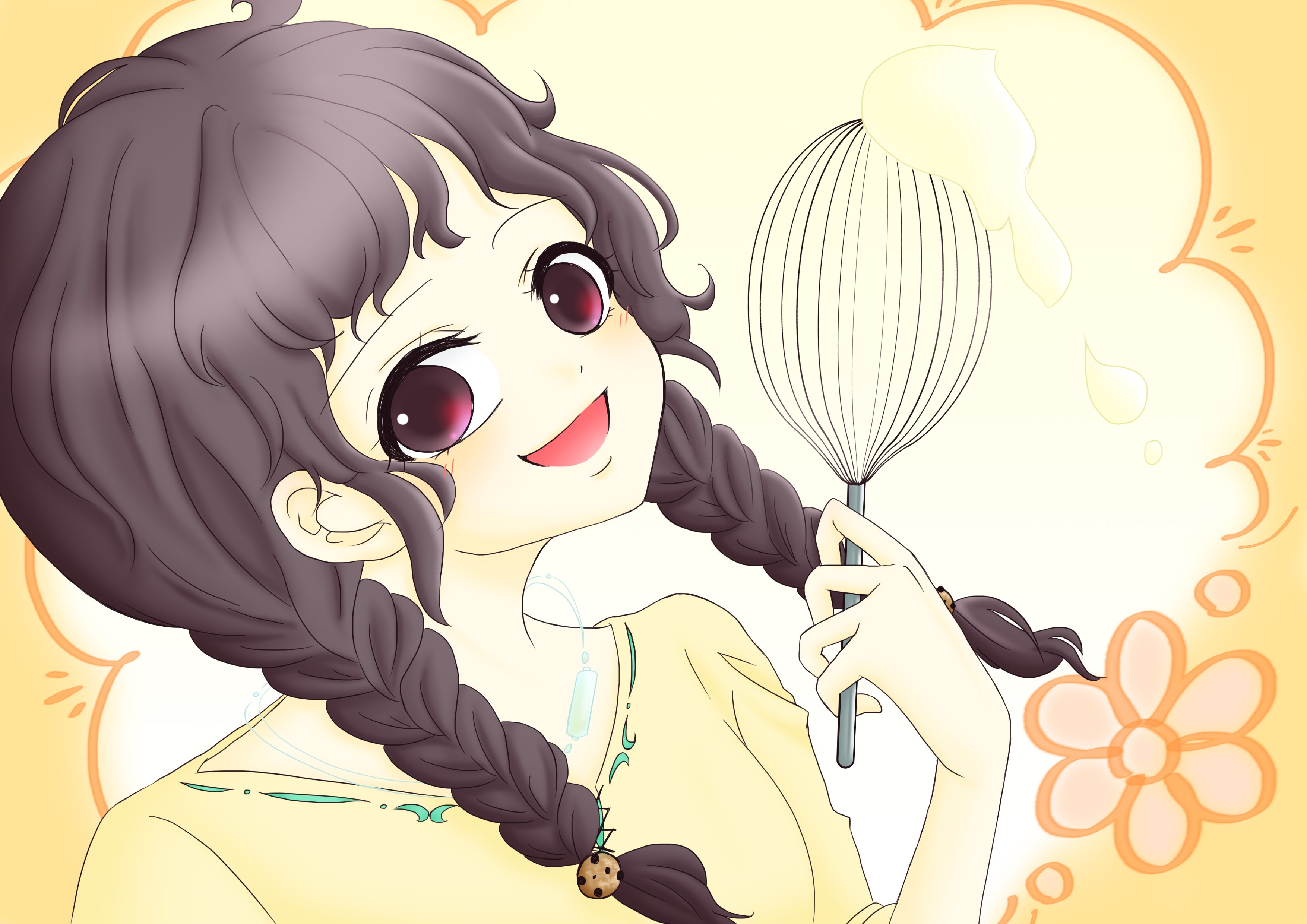 お菓子を美麗に描くほどの画力がなく、マドラーとカスタードクリーム……きっと何かを製作途中です。