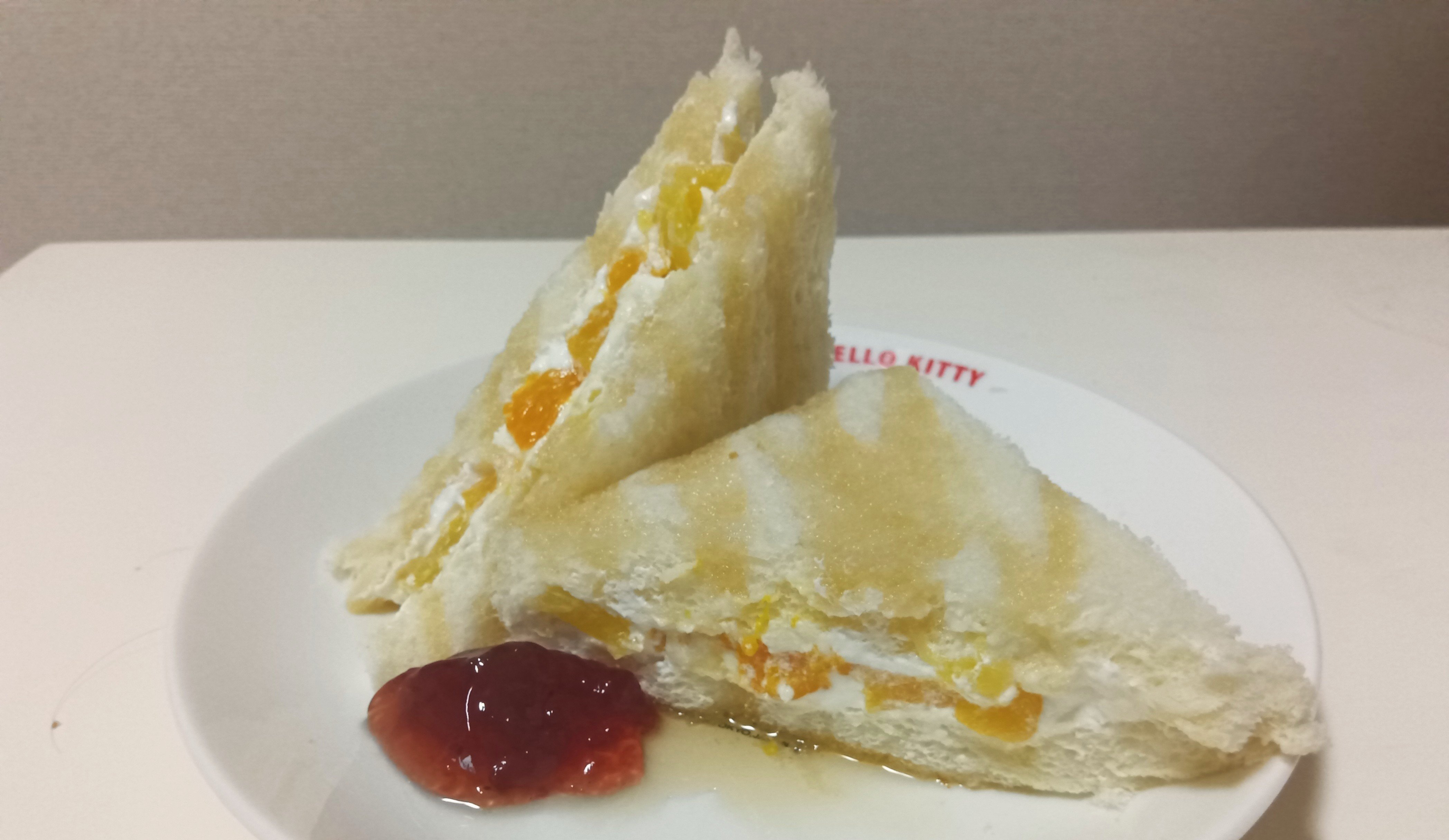 仕事終わりにパンとホイップクリームとフルーツと、自分で買ってきて即席したので、断面が綺麗じゃないとかはご容赦を(;´∀`)