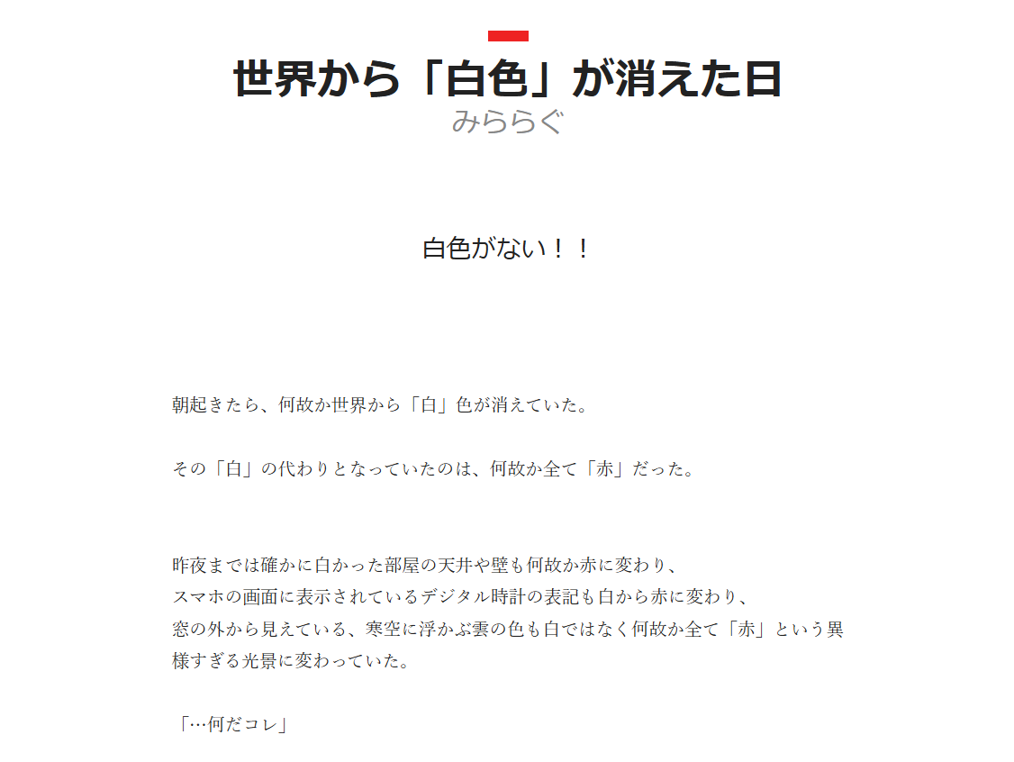 このお話は、タイトル通り「世界から白がなくなった」という単純な話なのですが、