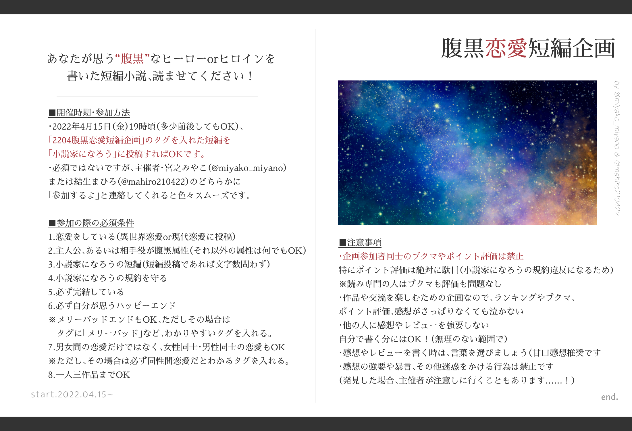 “腹黒”なヒーローorヒロインをテーマにした恋愛の短編小説企画です。