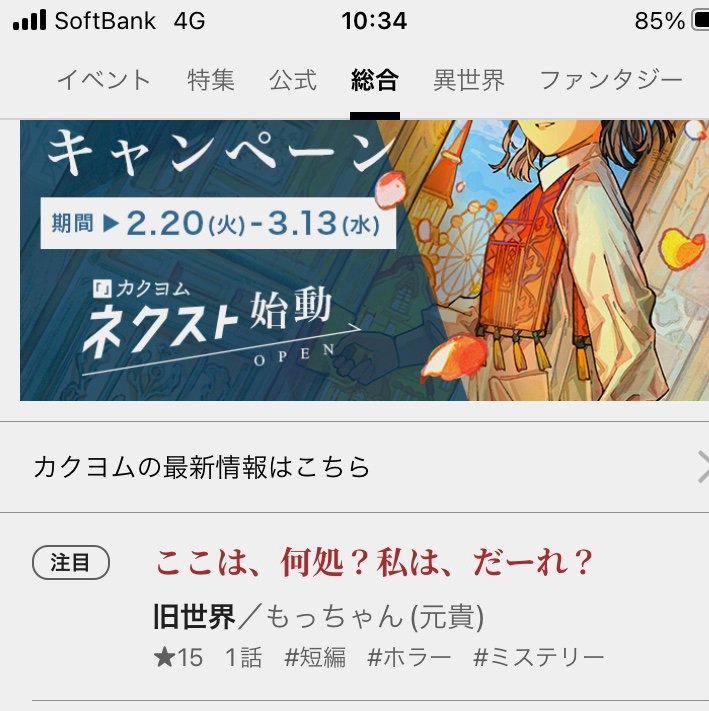 スマホ版のカクヨムの総合の注目の欄の1番上に、私の作品が!!