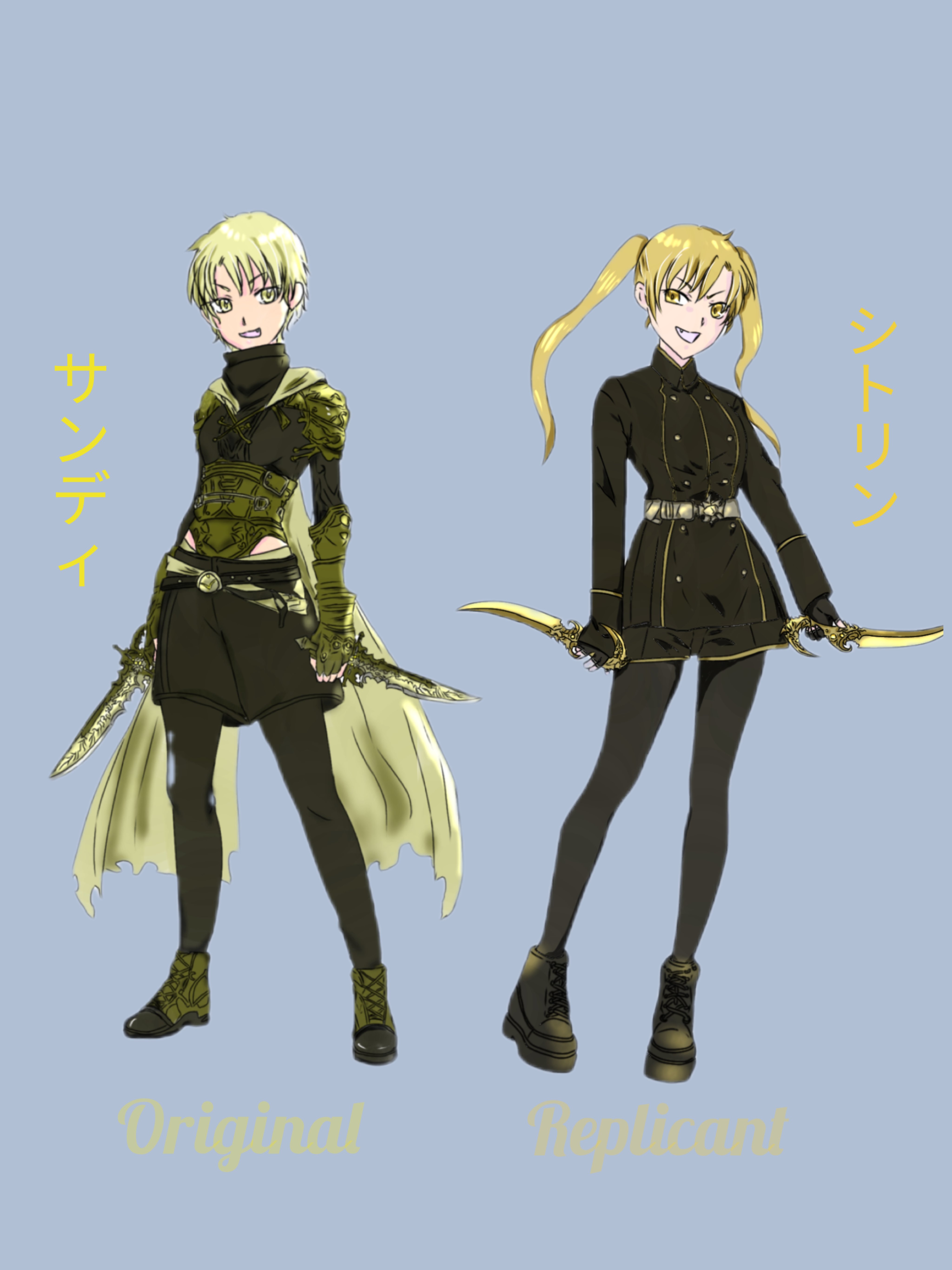 第4騎士団長のサンディ と シトリン の対比イラストです⚡