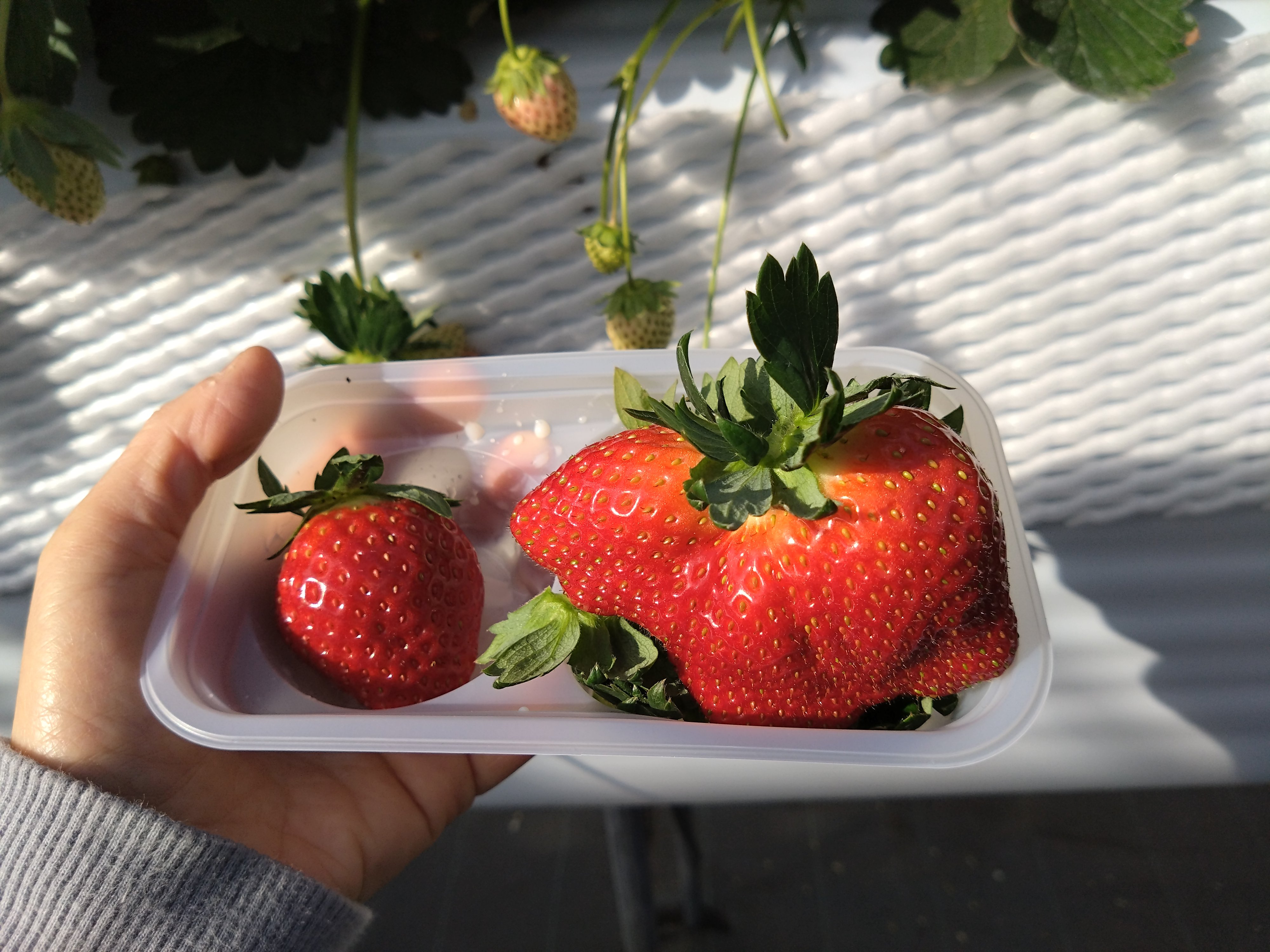 車の部品メーカーが経営しているいちご園なのですが、むっちゃ清潔で、ミツバチがハウスを飛んでたりして興味深かったですよ