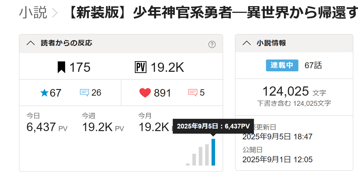 少年神官の新装版も投稿しているのですが……恋愛のドロドロの部分を連投すると「この先どうなっちゃうの感」が薄まるので「投稿頻度」というのは難しいところ。