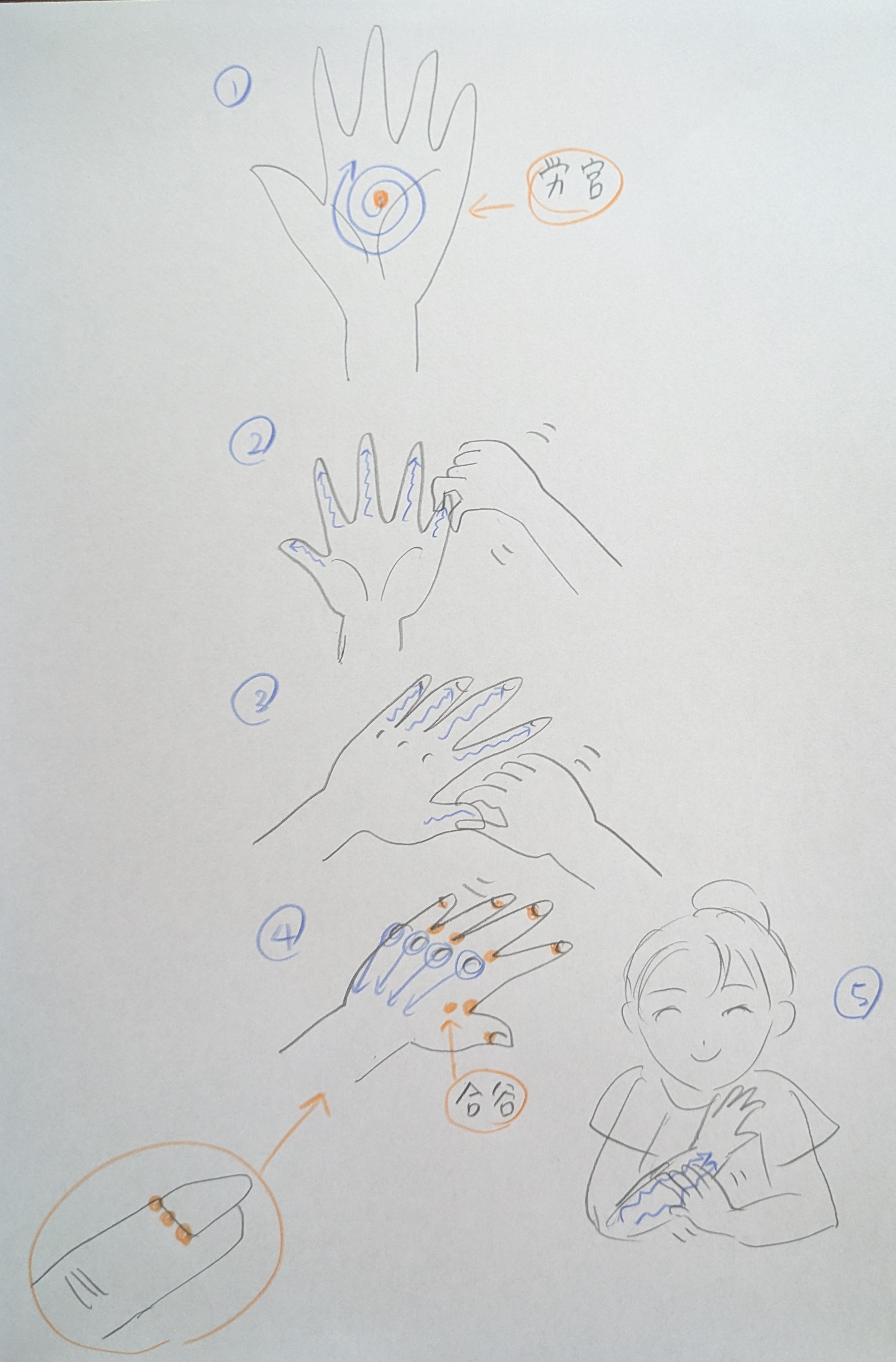 ①手のひらを親指でくるくるマッサージ