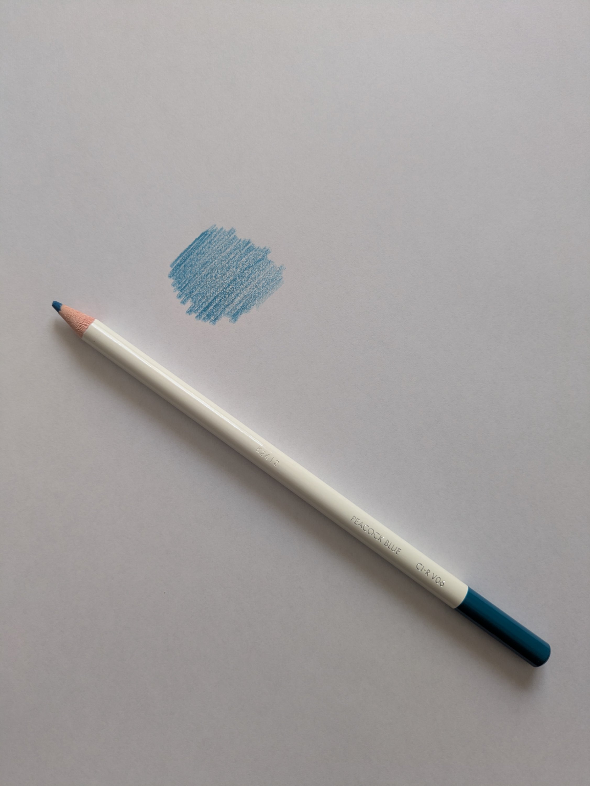 添えた写真は、ピーコックブルーという色の色鉛筆です。