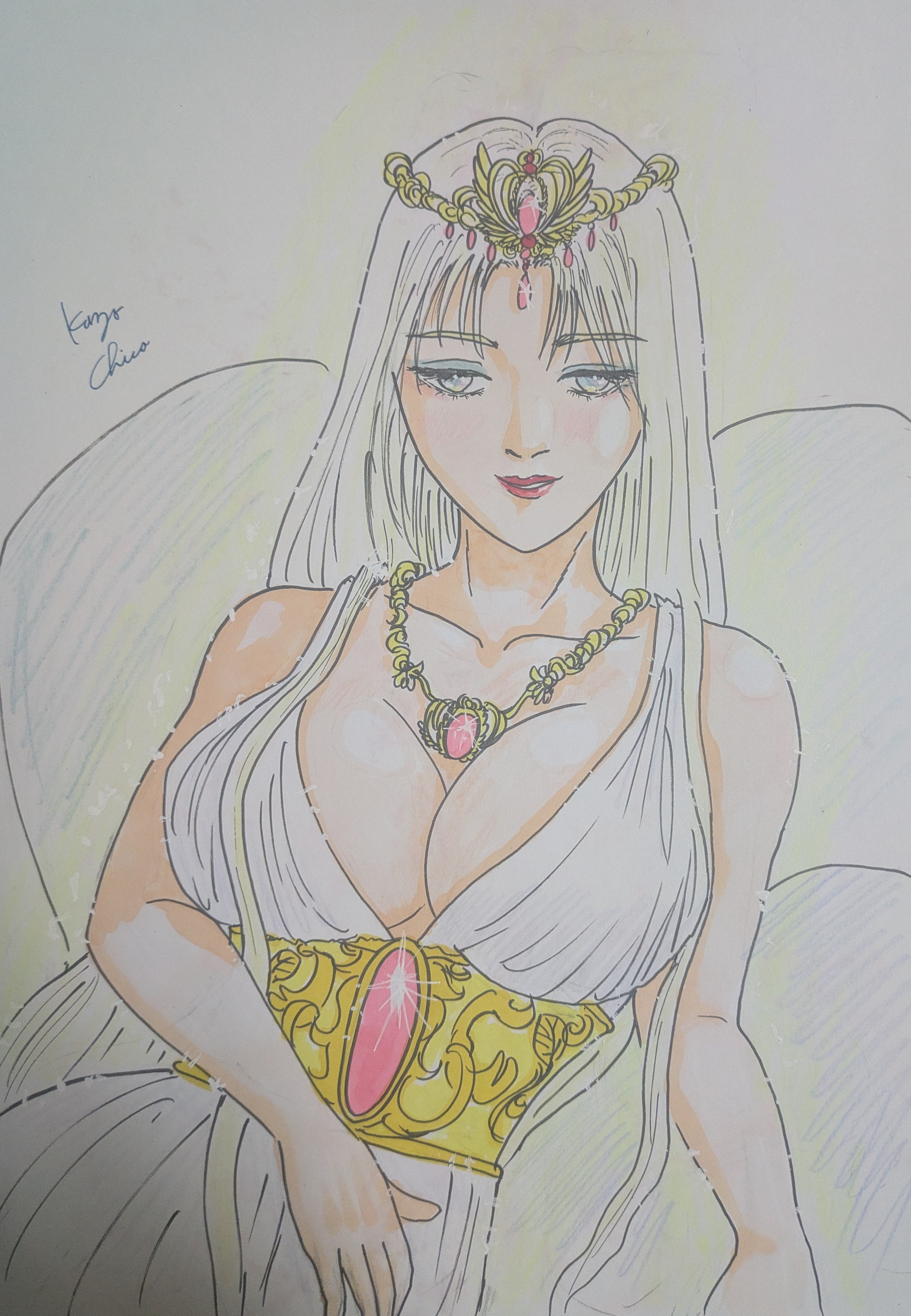 女神らしく見えるよう、気合を入れて描きました。