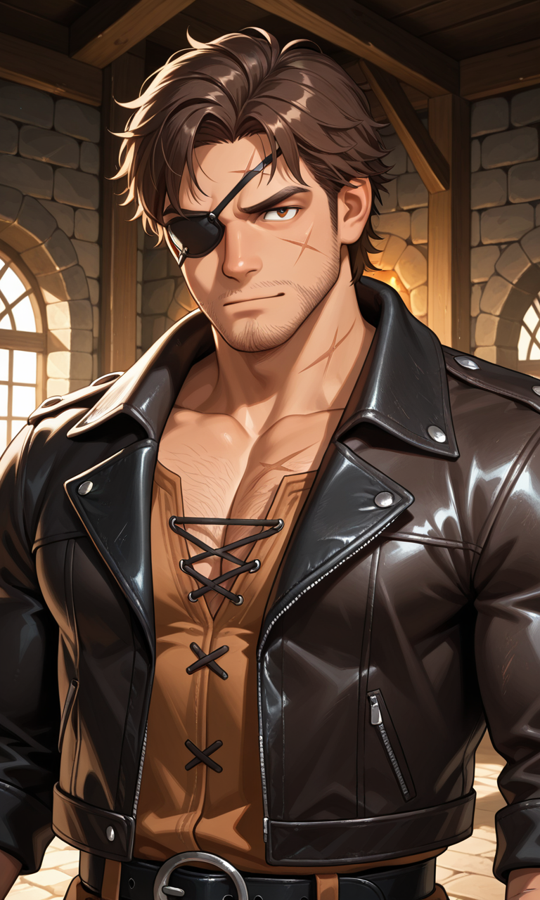異世界転生ものではありがちな、冒険者ギルドで主人公が出会い、ヤレヤレからの返り討ちに遭いそうな、いかにもな風貌のおじさん。