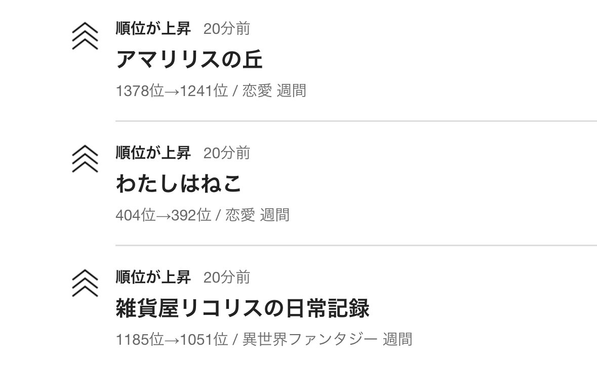 拙作、三作共に週間での各ジャンル順位が上がりました!