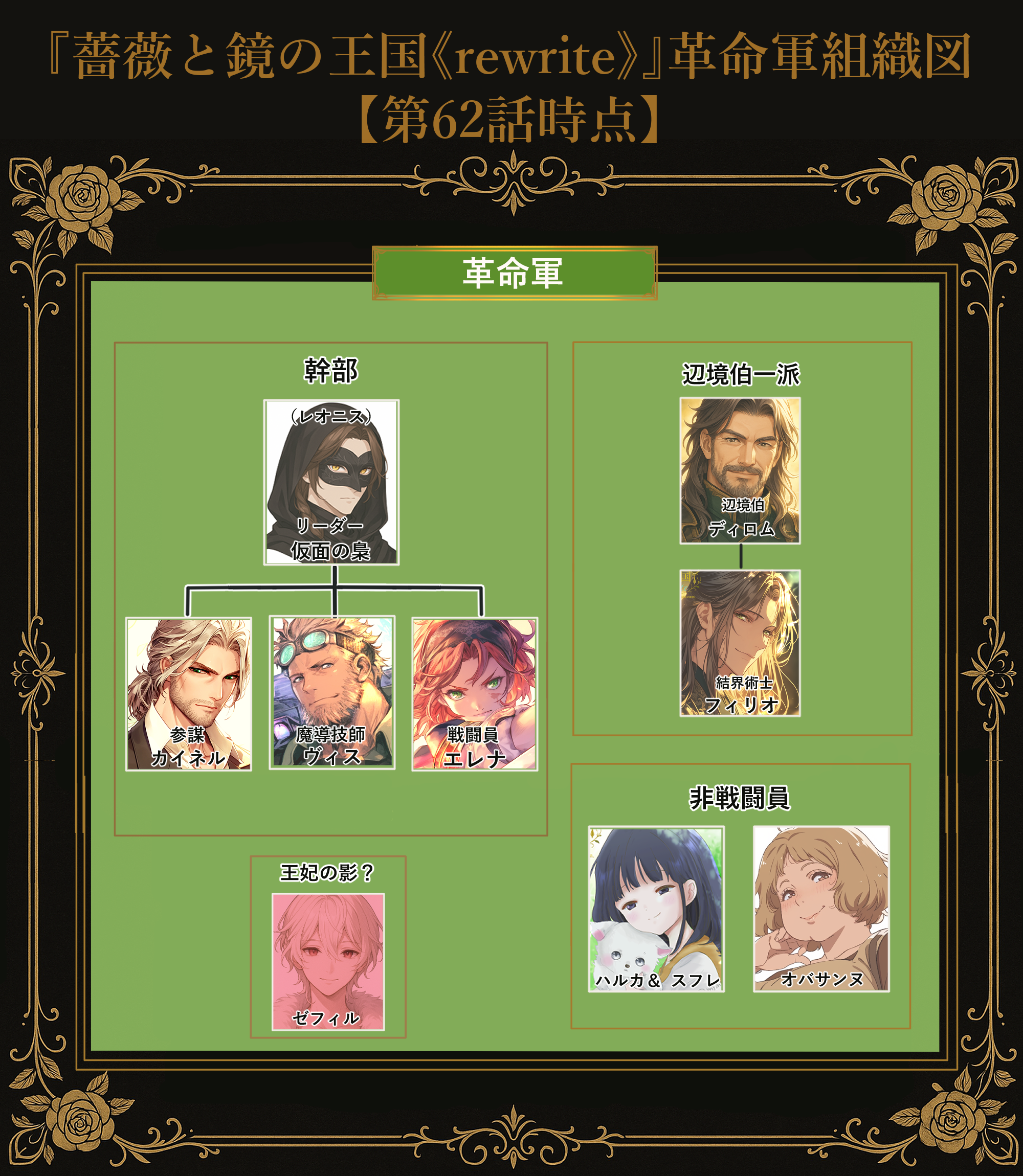 『薔薇と鏡の王国《rewrite》』革命軍組織図(第62話時点)