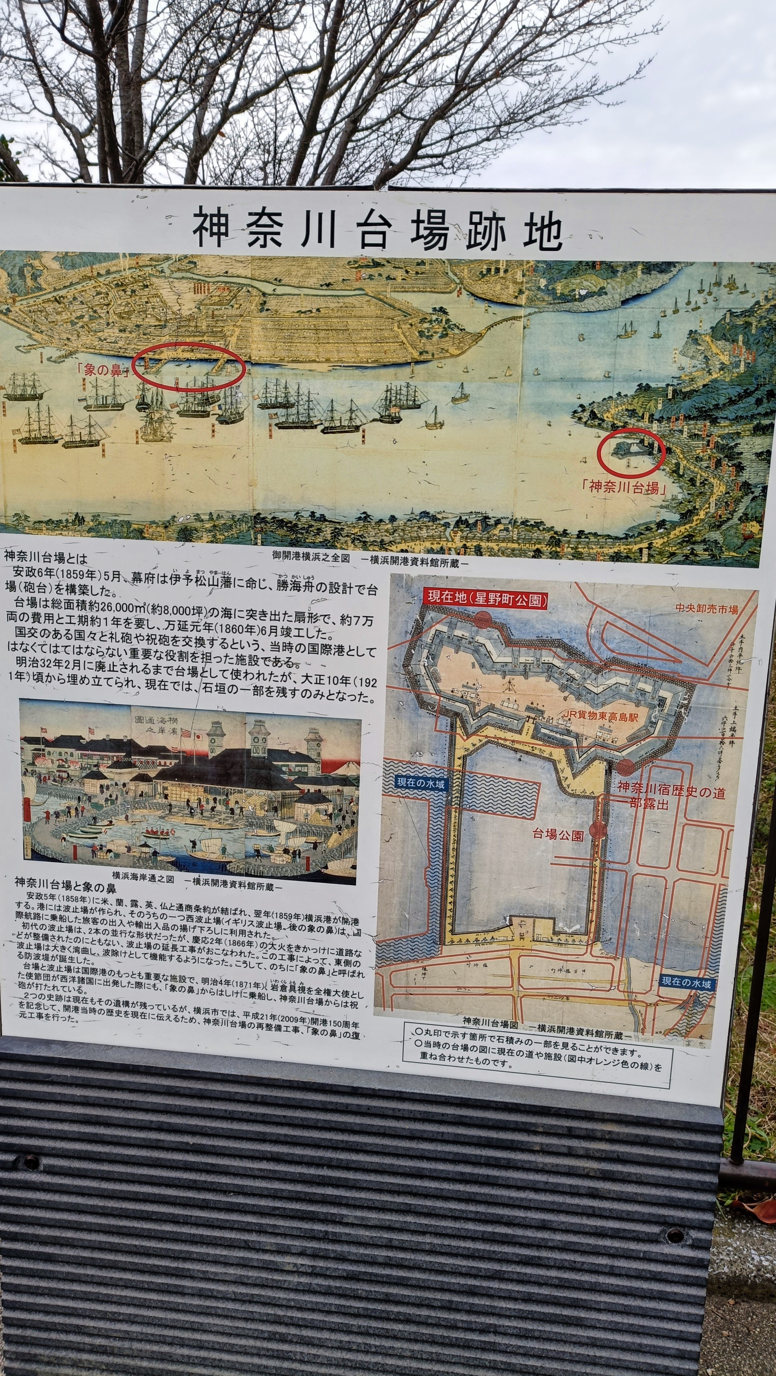 東京のお台場ではないですよ。現在の横浜市、東神奈川あたり、かつて海であったところに、幕末の1860年、横浜港防備のための、台場が設けられたのです。