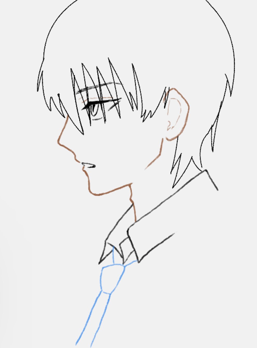 挿絵の迫水さんを描き始めました。横顔むずかしい」
