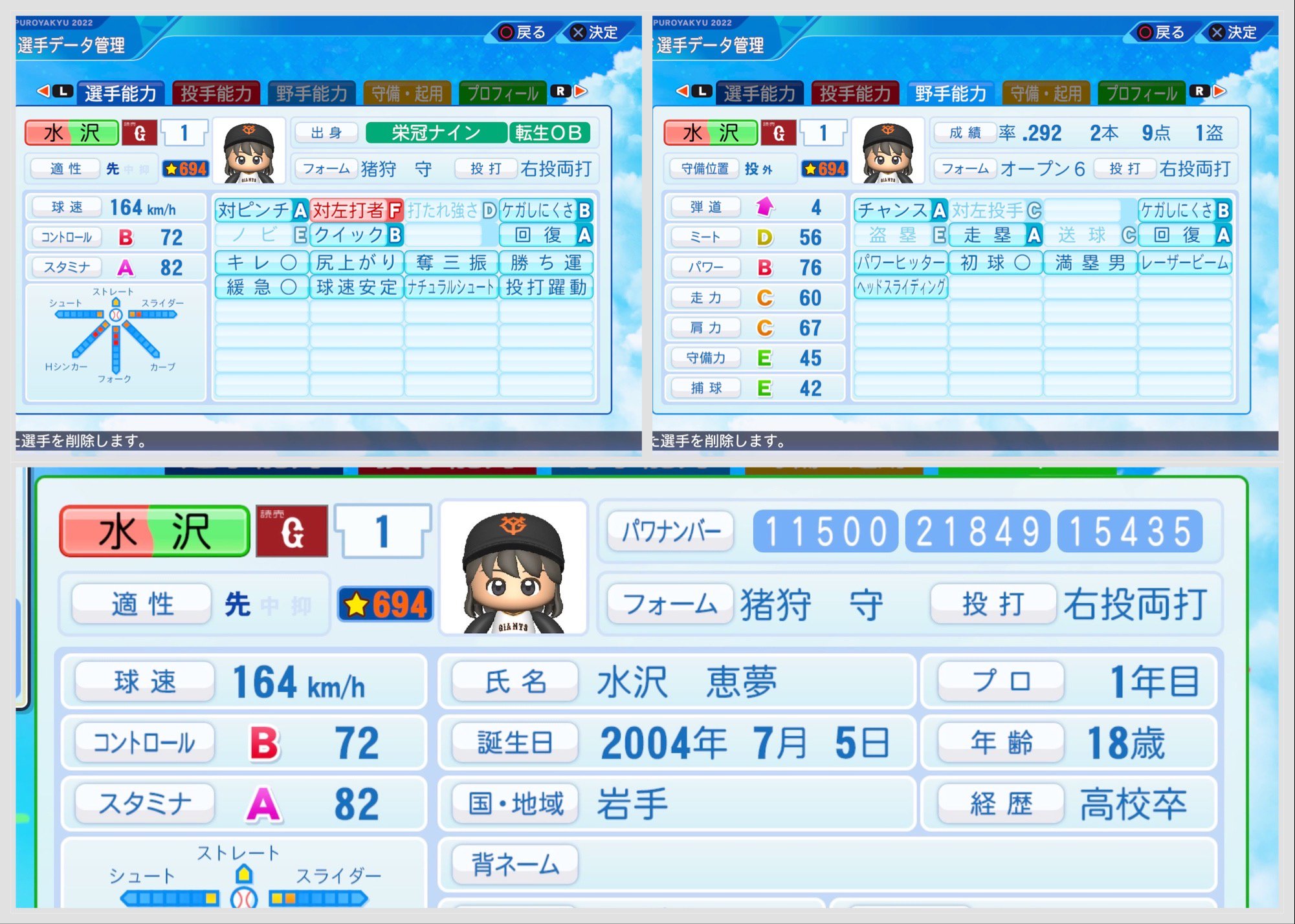 水沢恵夢パワナンバー&能力ステータス