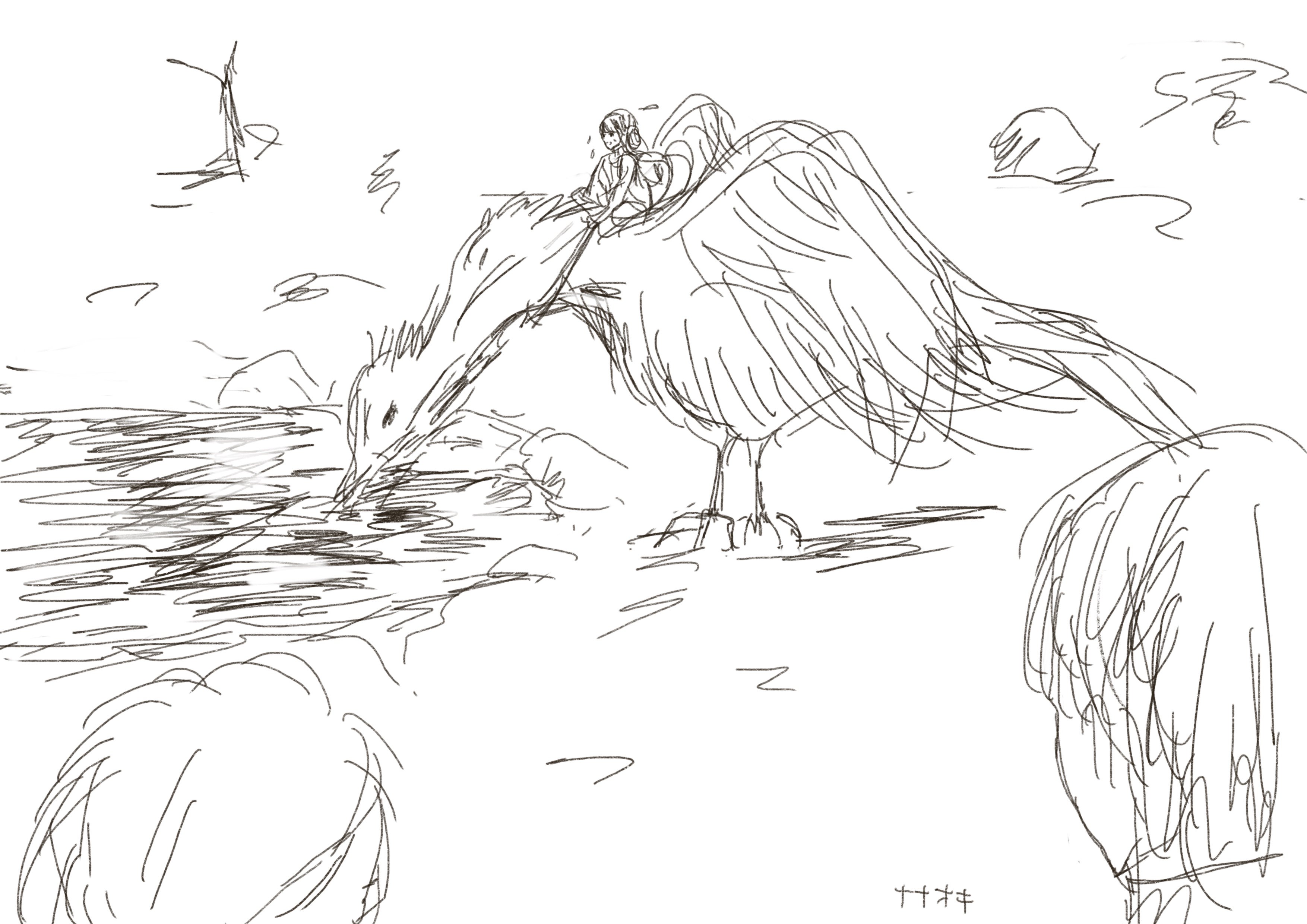 実は、巨大鳥の詳細なデザインがまだすごく曖昧です…(苦笑)。