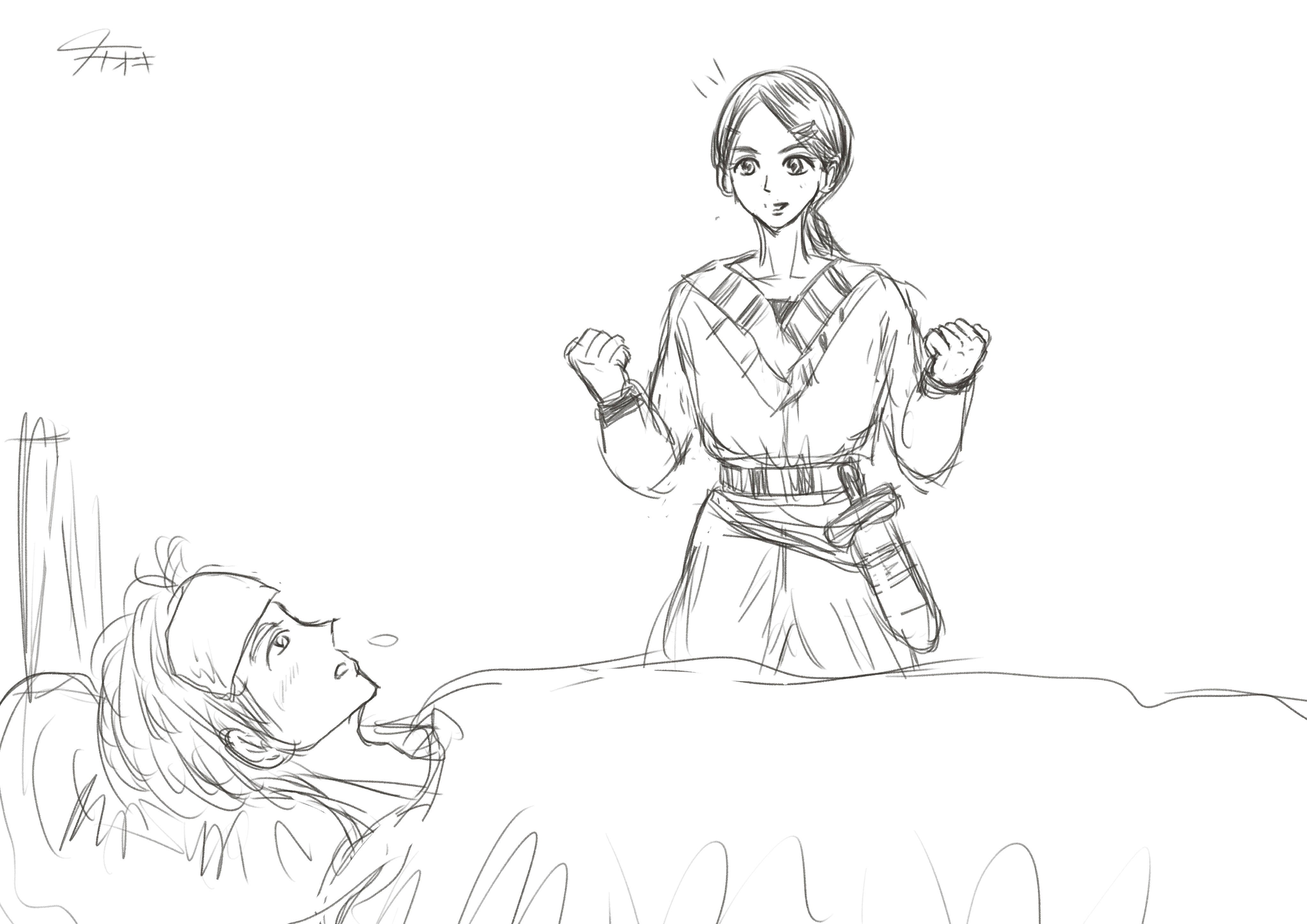 9話(3)、ミリアさんのおでこを描きたかった挿絵。