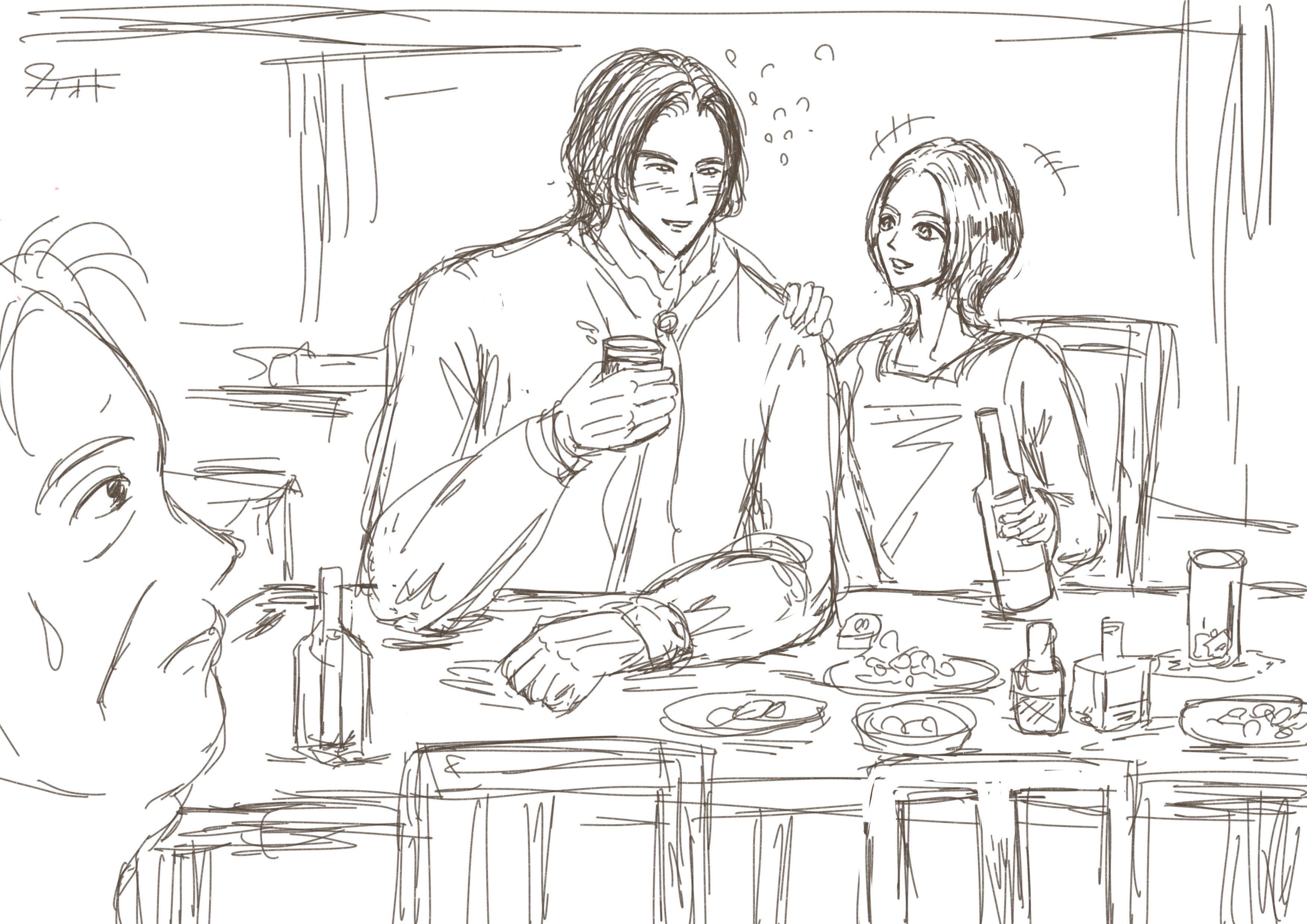 イラストは、アー(ルチカ)さんに、酒で潰される10分前のゲオルクさん。