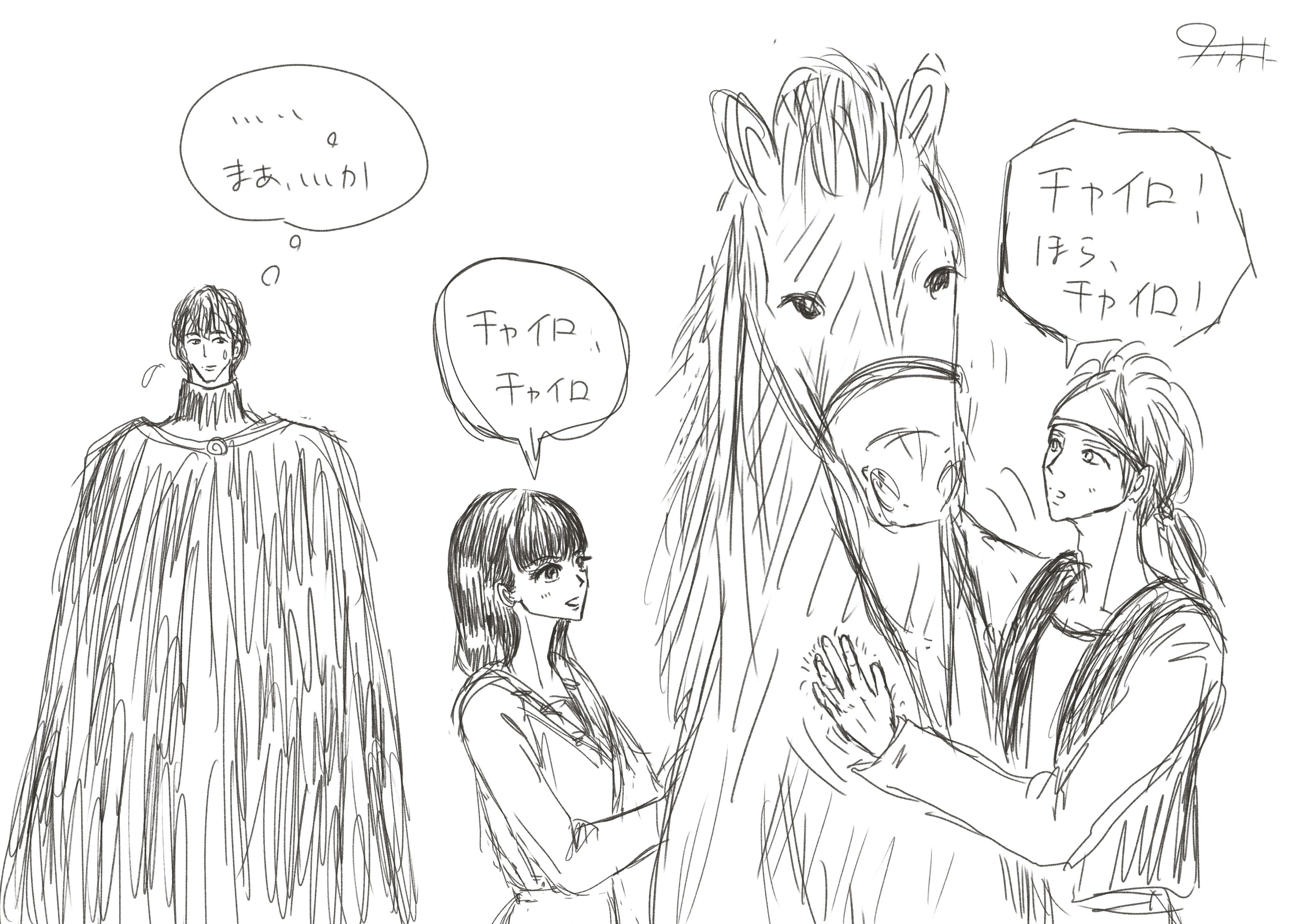 ちなみに、一行が持っている馬4頭は、茶色2頭、白1頭、黒1頭の裏設定。
