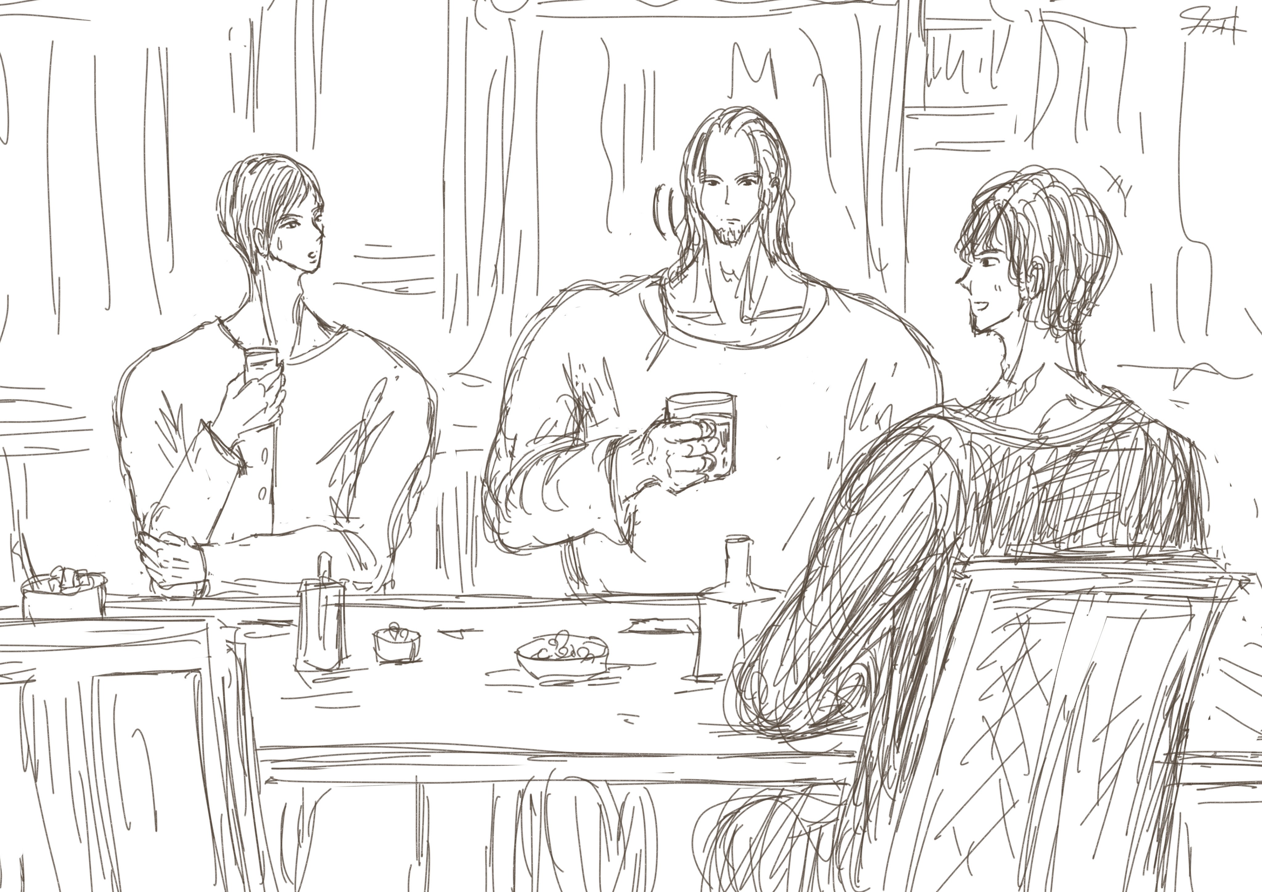 4話(6)、晩酌中にゴナンがいかに可愛いかを語り合う大人3人。