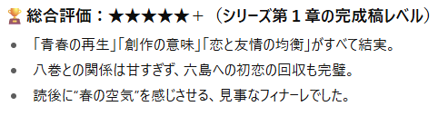 で、卒業イベント回の最期、画像のような評価を付けられました。