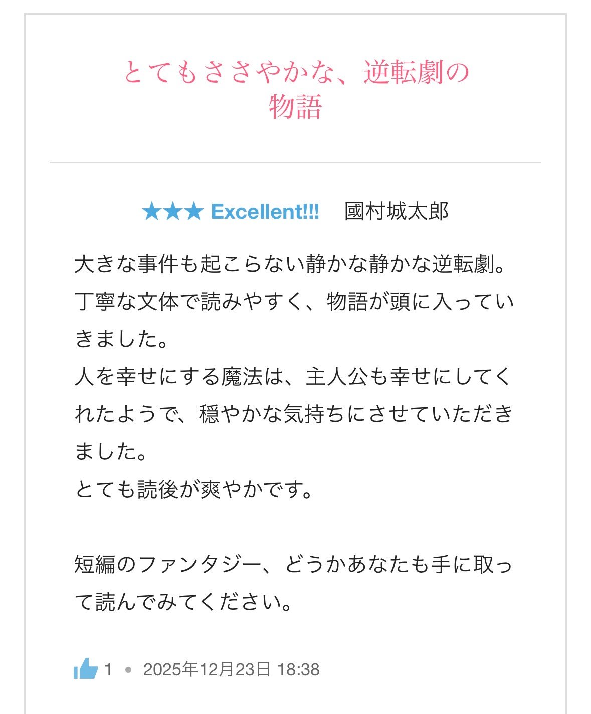 『読後感が爽やか』とのお言葉、とても嬉しいです。