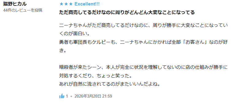 作品レビューありがとうございます。