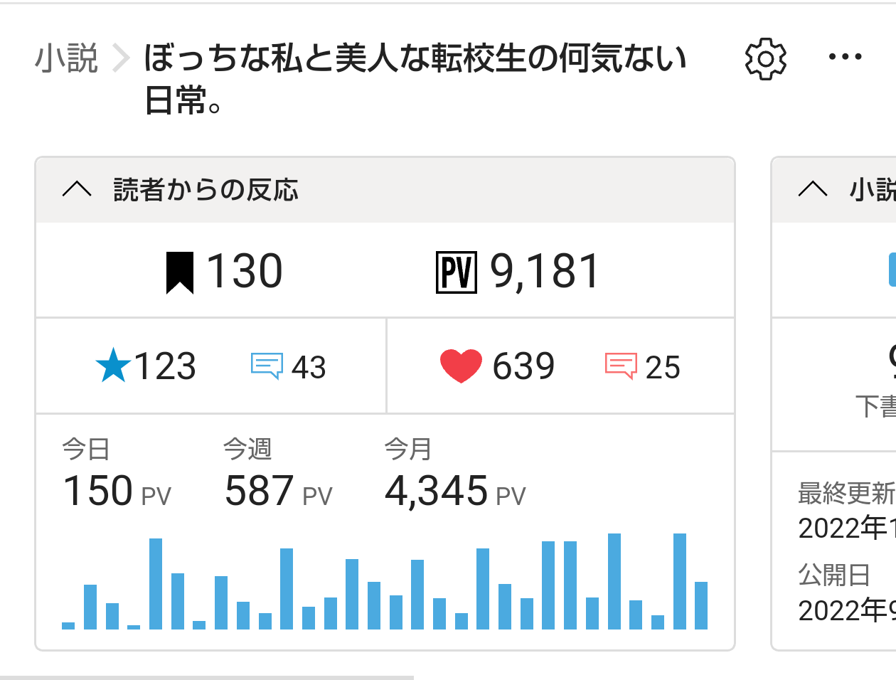 『ぼっちな私と美人な転校生の何気ない日常。』(軽めの百合小説)PVが9000を超えました。1万まで後少し。