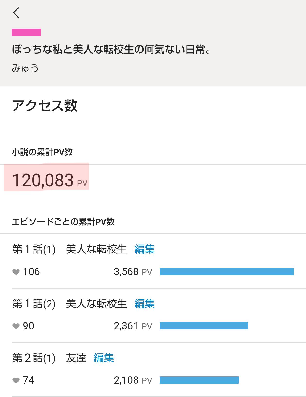 『ぼっちな私と美人な転校生の何気ない日常。』(軽めの百合小説)の総合PVが、12万を突破しました。執筆当初は三部完結までに10万が目標と思っていましたが、その数値をどんどん超えていきます。嬉しい。