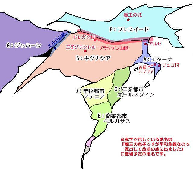 『魔王の息子ですが平和主義なので家出して放浪の旅に出ました』の世界地図です。