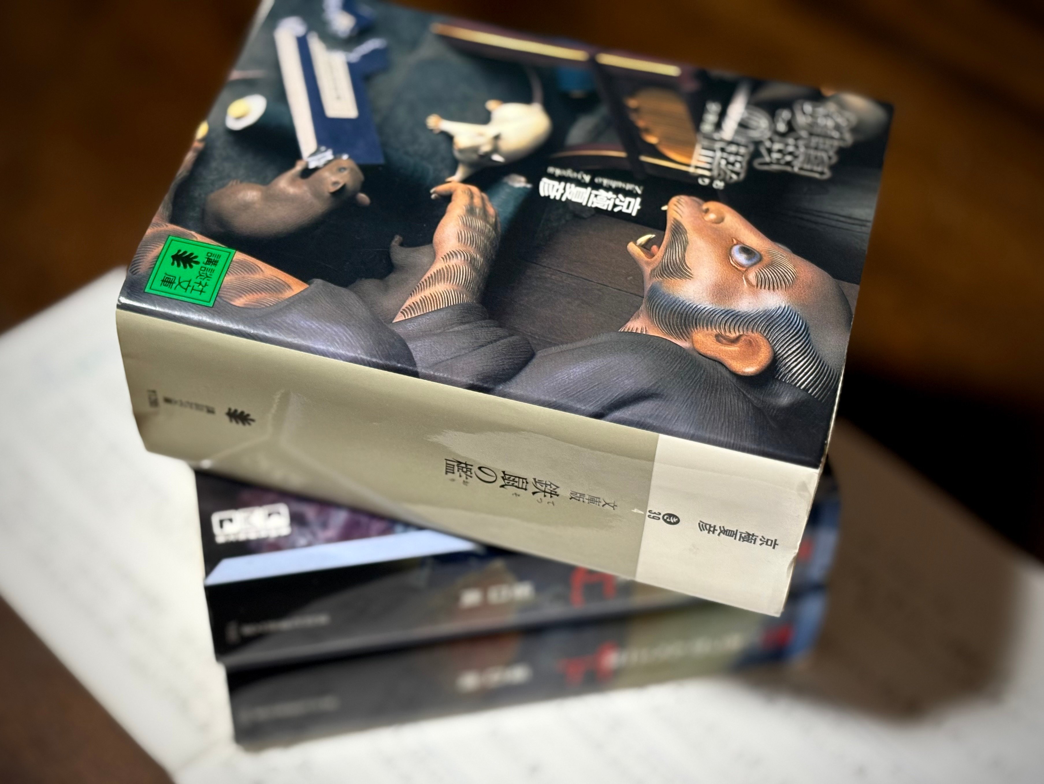 画像はプロットを書いたノートとインスパイア元の小説と漫画です。