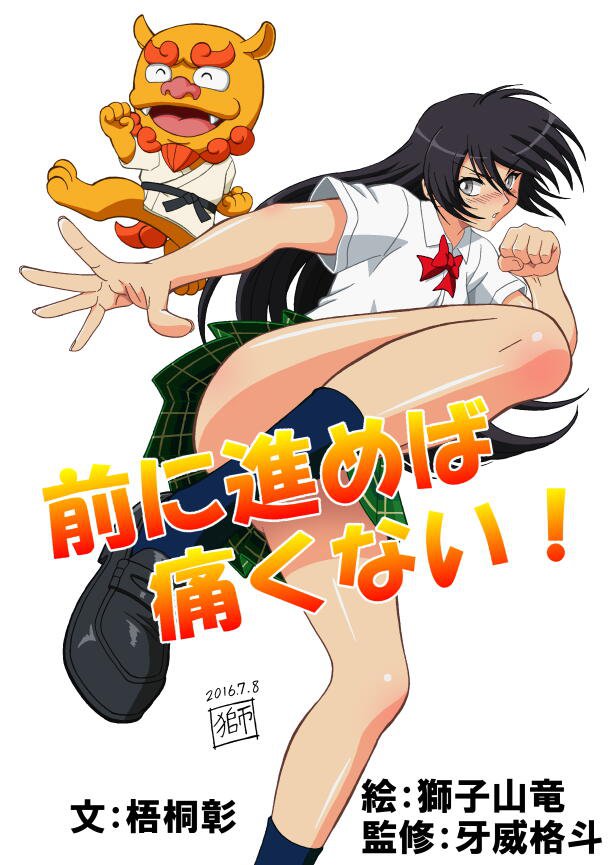 かなり以前の小説ですが「前に進めば痛くない!」の主人公神楽坂優葉とマスコットキャラクターのシーサー君です。