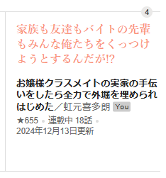 『お嬢様クラスメイトの実家の手伝いをしたら全力で外堀を埋められはじめた』が、ラブコメの週間ランキングで4位になりました!