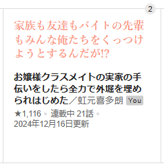 おかげさまで『お嬢様クラスメイトの実家の手伝いをしたら全力で外堀を埋められはじめた』が、ラブコメの週間ランキングで2位になりました!