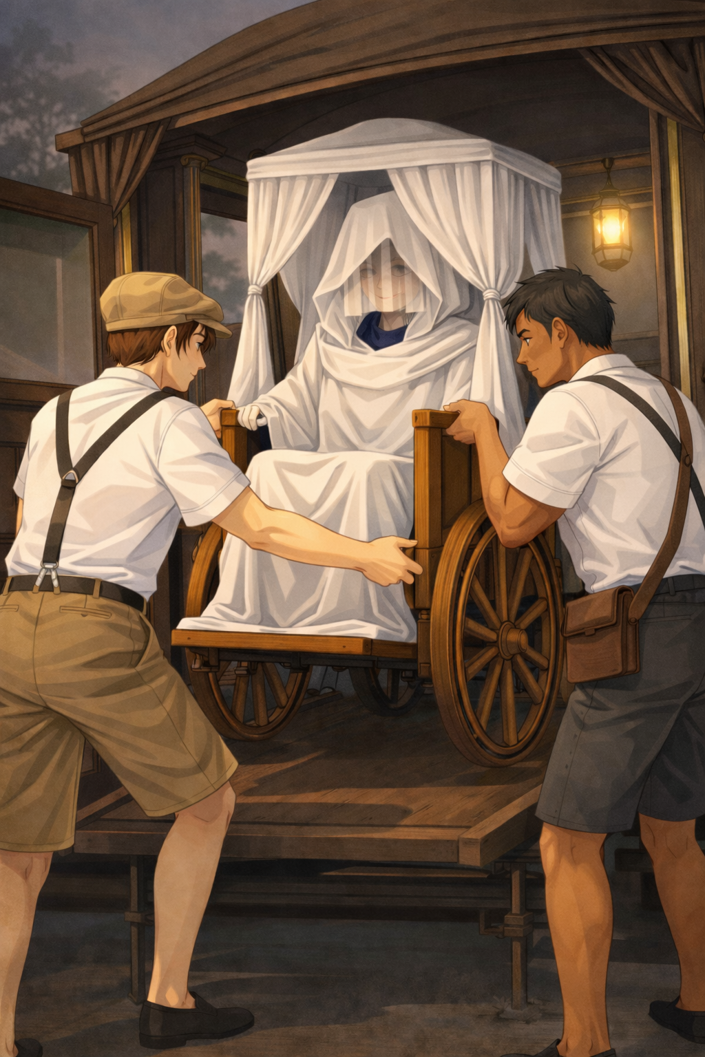 P1-SP07-1◇参考挿絵:車椅子ごと馬車に乗せられる