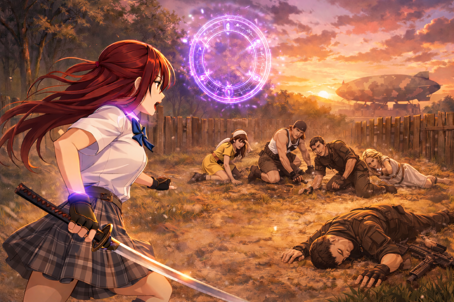 P1-SP10-1◇参考挿絵:神経伝達阻害の呪文で転倒する拉致部隊