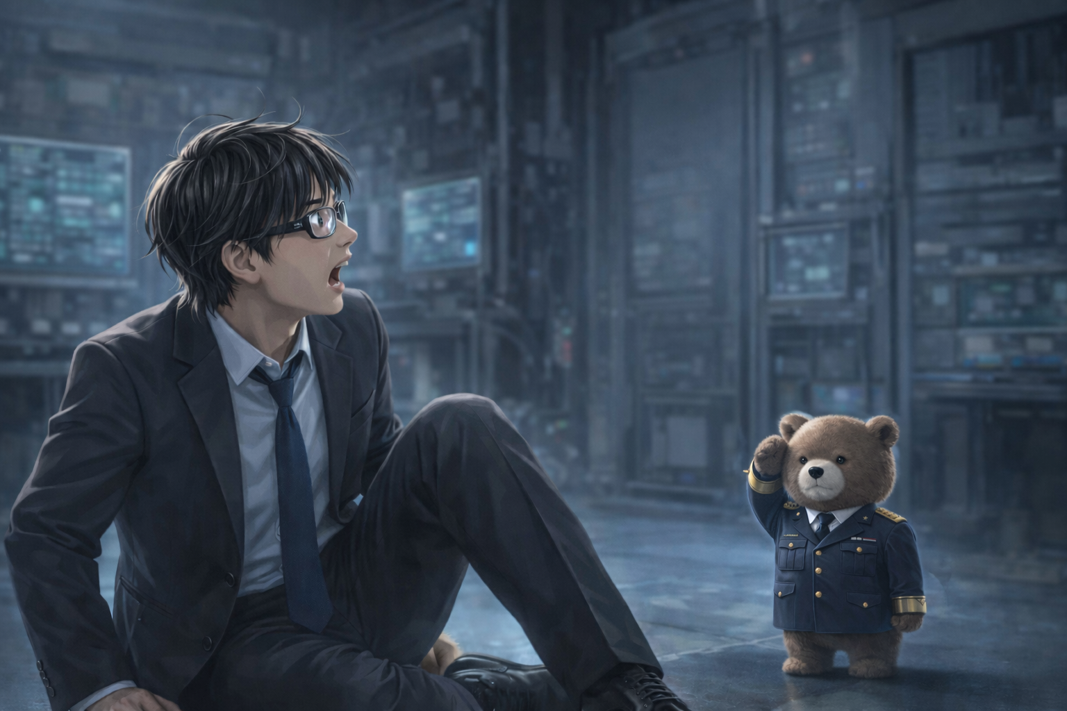 P2-SP03-1◇参考挿絵:地下の研究室で出迎える熊のアバター