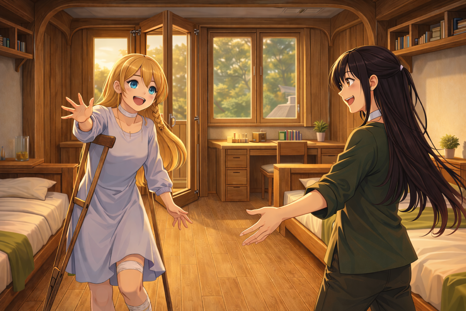P2-SP07-2◇参考挿絵:ルームメイトの帰りを出迎える
