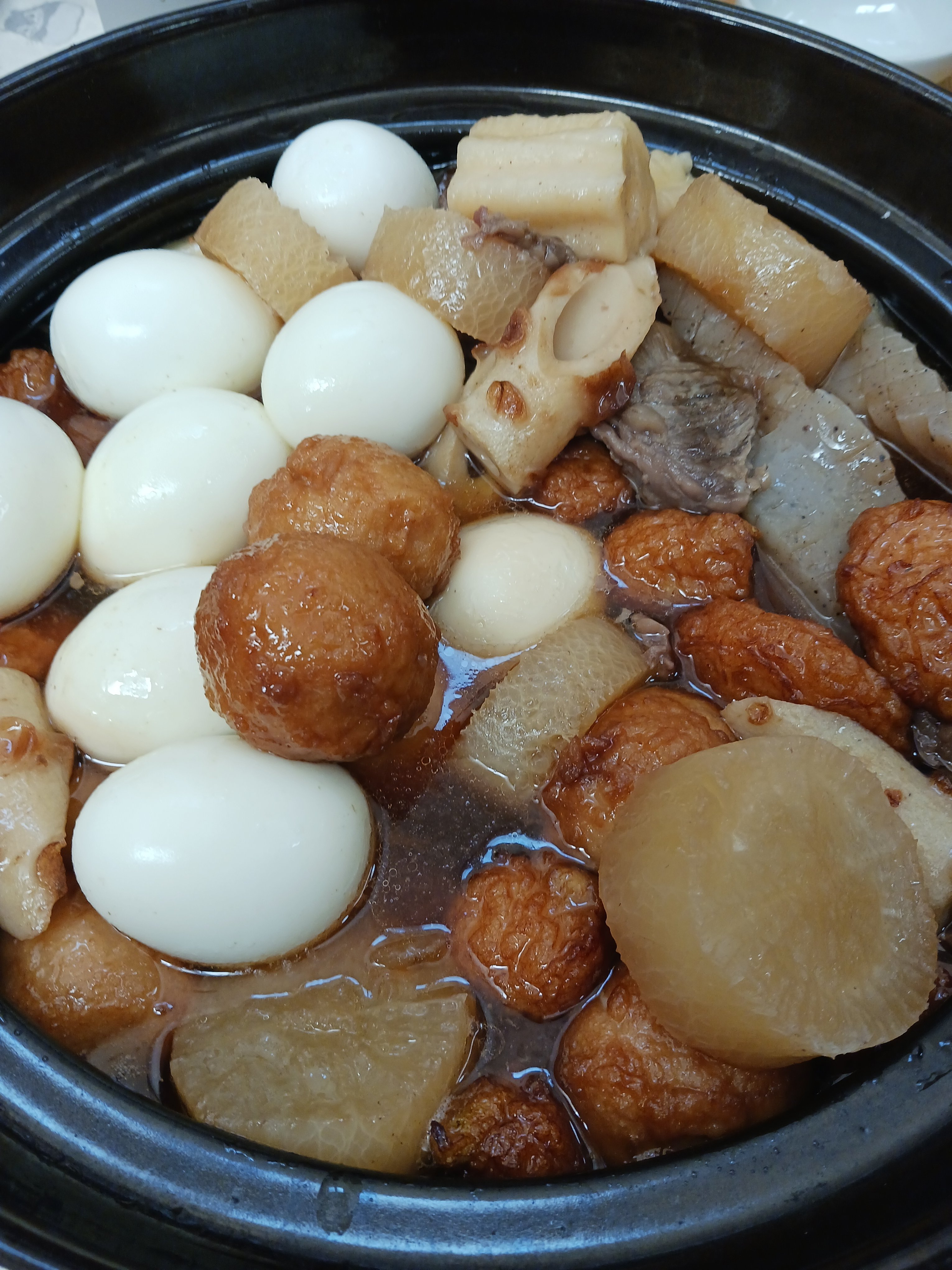がんもボールとゆで卵がたっぷり入った、でんでんでん。出汁が沁みたおでんは、言葉にできないほど美味しいですね。