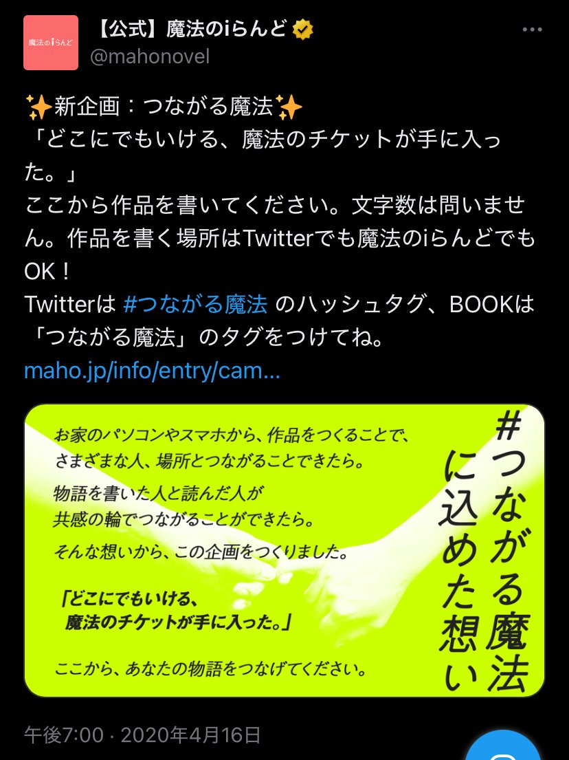 魔法のiらんどの企画に向けて書いた短文でした。添付画像からわかるようにまたまた企画の趣旨とはなんとなくずれている気がしますが、現実的な話が好きなので……。と言いつつ魔法が出てくる小説も大好きです。……なんの話? 比喩で表される世界観を表現できるようになりたいという話でした。